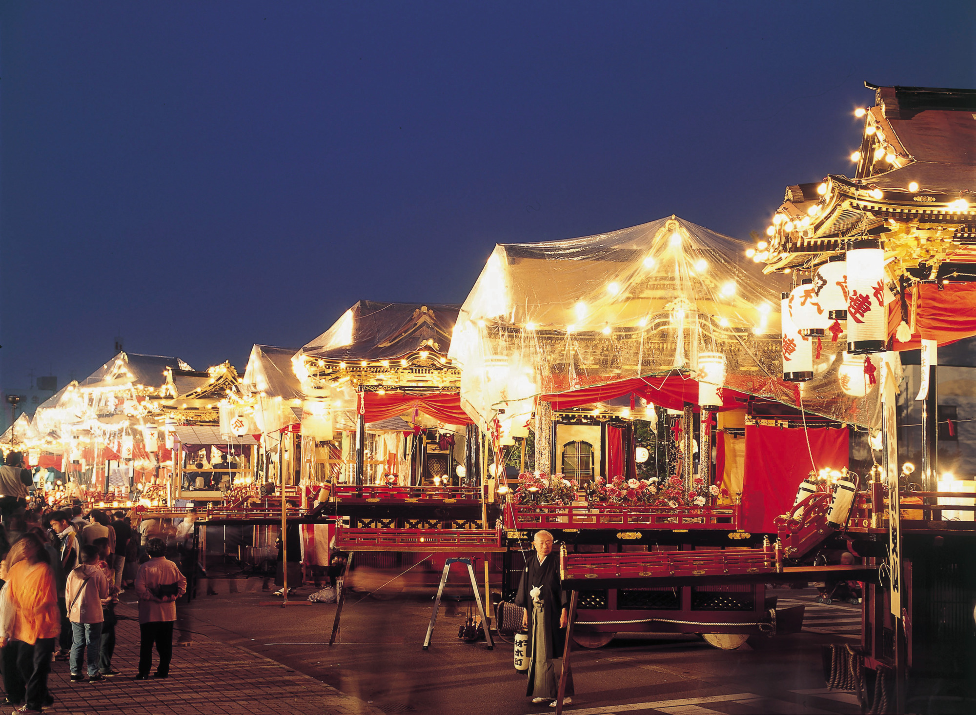 特に、8基の曳山(ひきやま)が勢揃いする「曳山曳揃え」や、豪華絢爛な曳山のうえで子供たちが歌舞伎を熱演する「曳山子供歌舞伎」は、見応え抜群です!