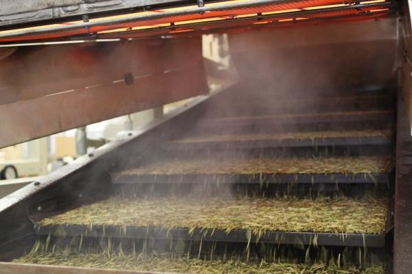 「丸八製茶場」の本店では、工場でお茶を焙じている様子を見学通路からご覧いただけます。喫茶スペースでは、こだわり尽くした一杯を味わうこともできますよ。