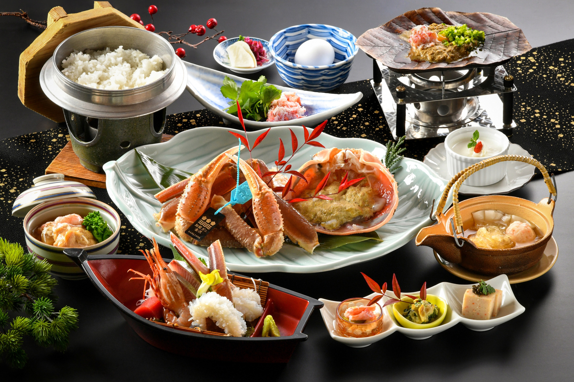 定義・ルールが厳密に定められており、「器には必ず山中漆器と九谷焼が使用する」など、見た目にも楽しめる贅沢なおもてなし料理です。