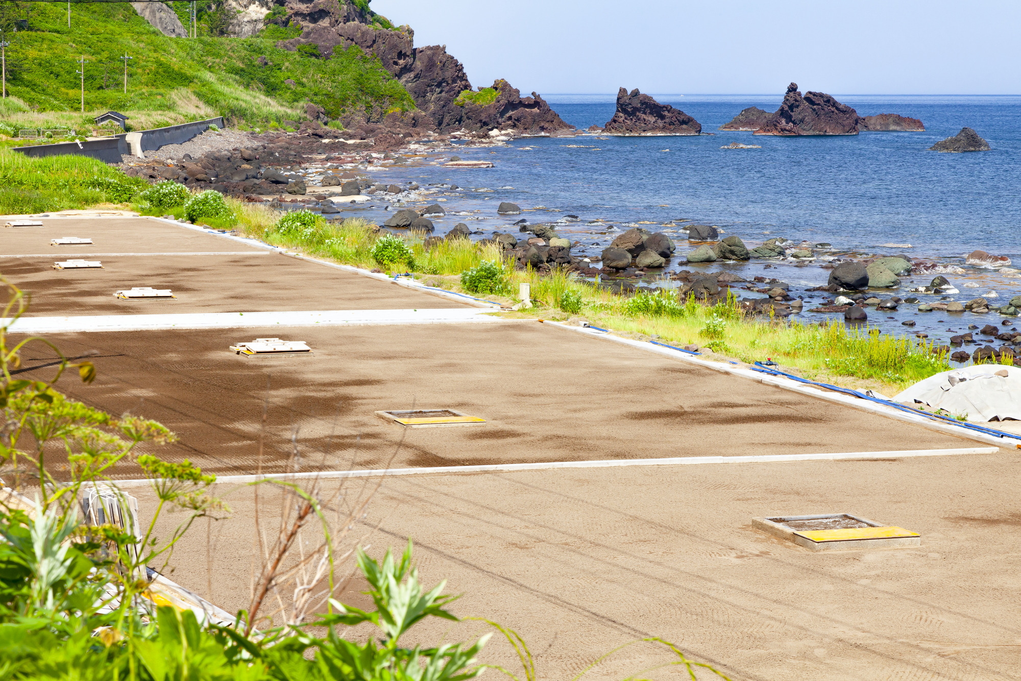 半島西側の日本海に面した海岸「外浦(そとうら)」には、日本海の荒波で削られた奇岩や断崖があり観光スポットが点在しています。北東部にかけては、海沿いの急な斜面を生かした棚田の景色や、古くから伝わる製塩技術の体験もでき、自然と共存した暮らしに触れることも。一方、富山湾に面した「内浦(うちうら)」は、穏やかな海となだらかな砂浜が特長。市街地には黒瓦の家が立ち並び、のどかな田園風景も見られます。