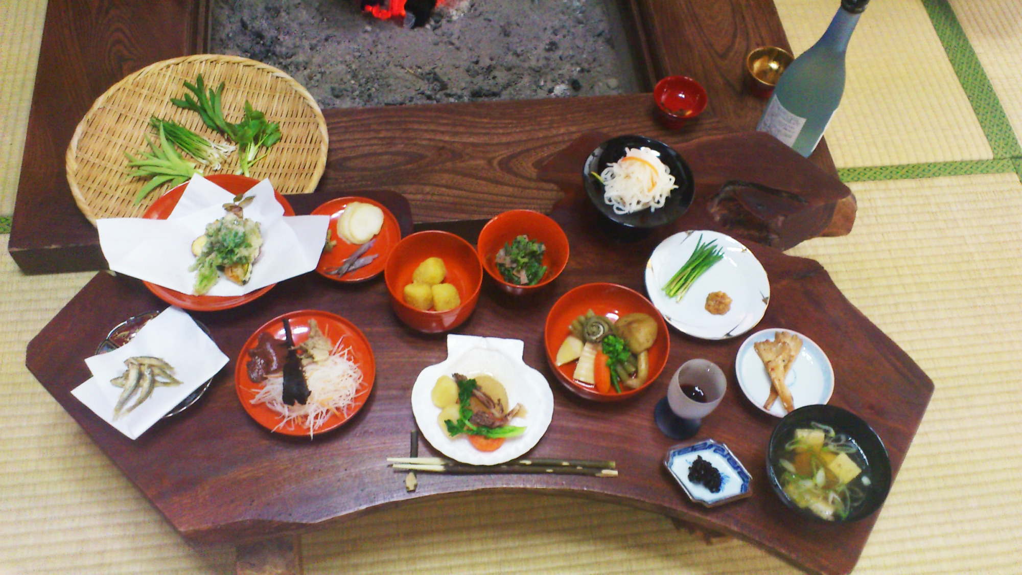 お宿によっては、囲炉裏や五右衛門風呂、釜での炊飯なども可能。日中は、稲作体験や山菜採りなど日常では体験できない「里山の生活」をお楽しみください。