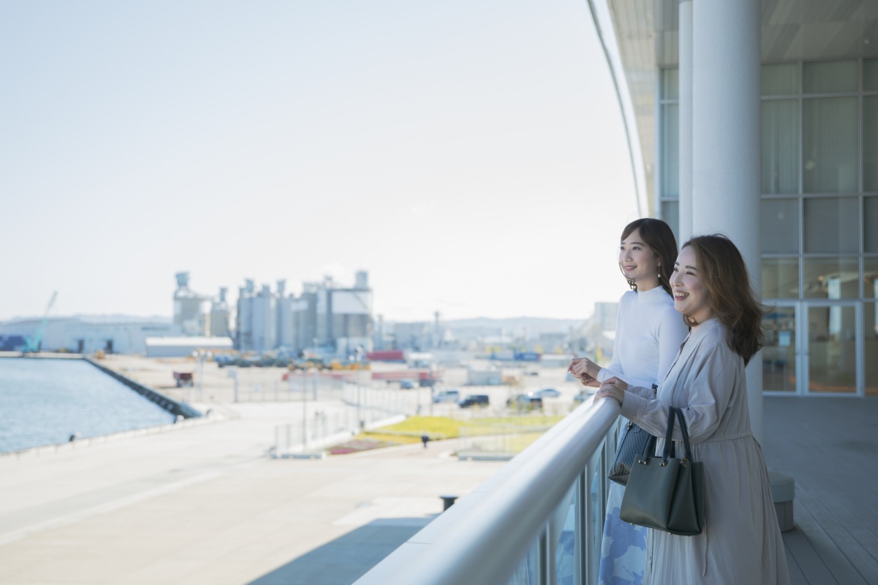 また、海風を肌で感じられる屋根付き展望デッキからは、クルーズ船の見学・見送りが可能。