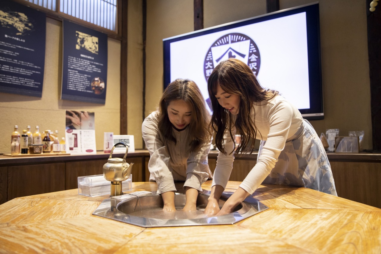 『糀蔵』で同社の歴史や、醤油・味噌について解説を聞いた後、パーク内の各所を案内してもらい、最後は肌がモチモチすべすべになる糀の手湯を体験できます。