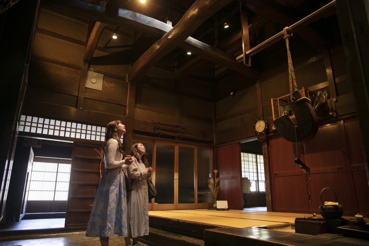 広い土間や太い梁、玄関へと繋がる蔵の扉、囲炉裏など、歴史映画の舞台のような趣あふれる素敵な空間を見学できます。