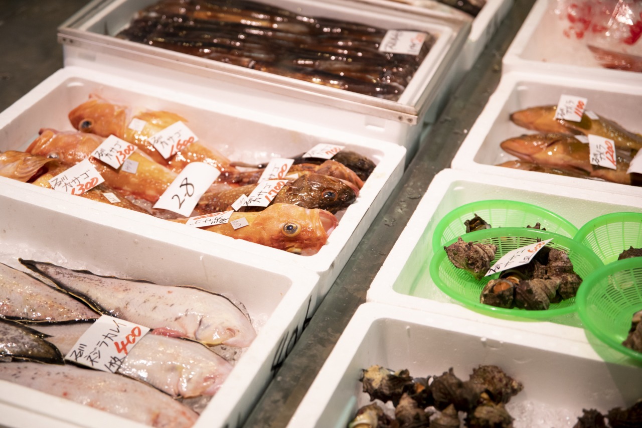 その金沢港に隣接する『金沢港いきいき魚市』では、厳選されたとれたての地物の魚が数多く販売されています。