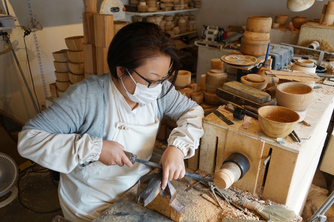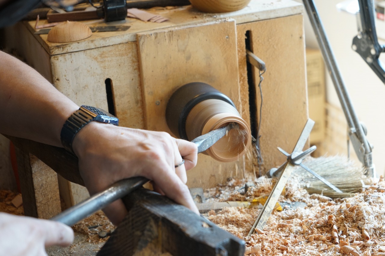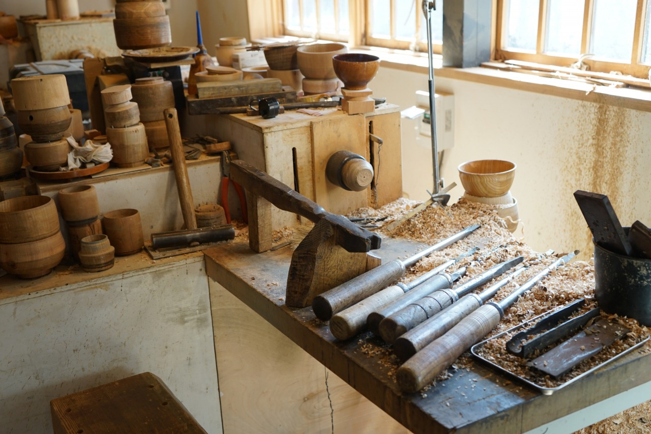 漆を塗る前のお椀や盆などの木工品を加工する職人は「木地師」と呼ばれますが、