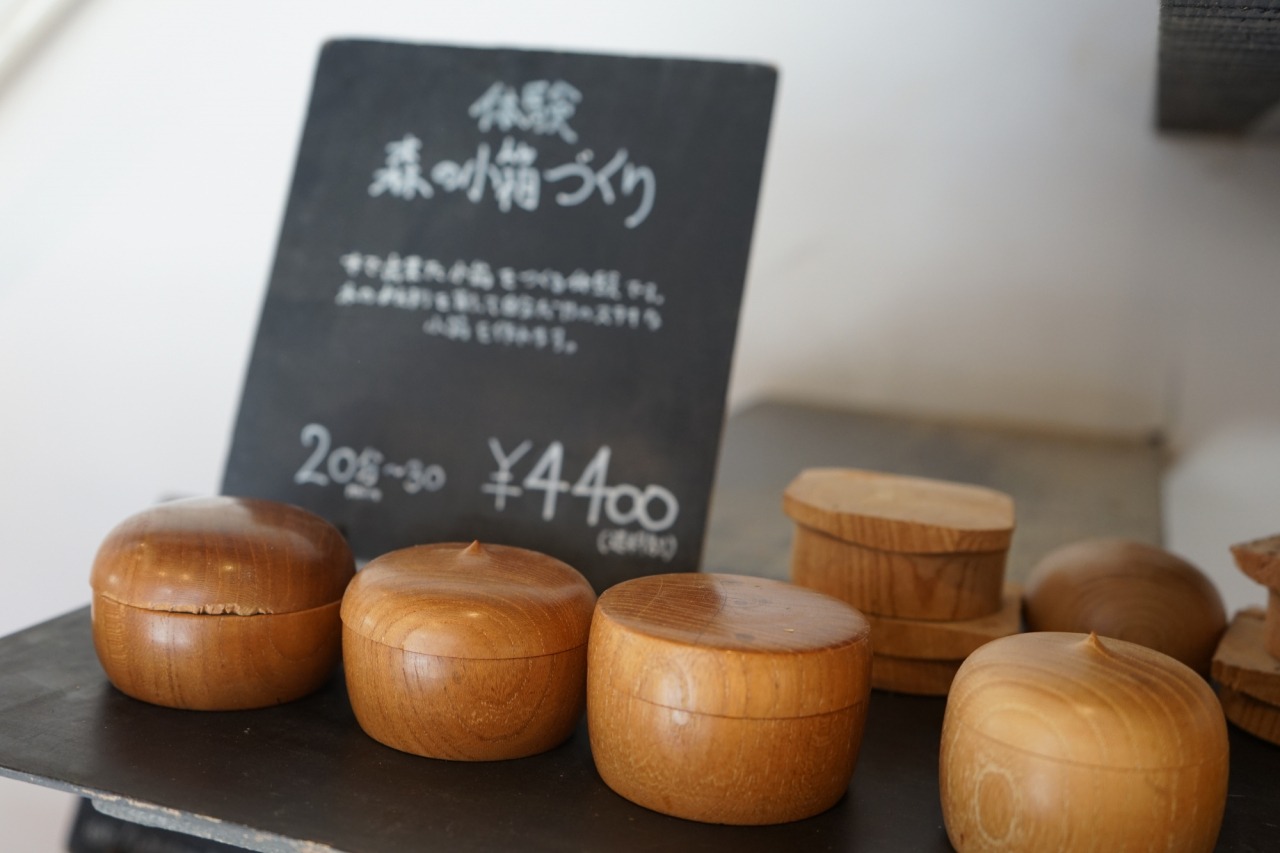 【体験料金】森の小箱づくり体験:4,400円、ハイジな器づくり体験:4,950円、木の器づくり体験:7,700円