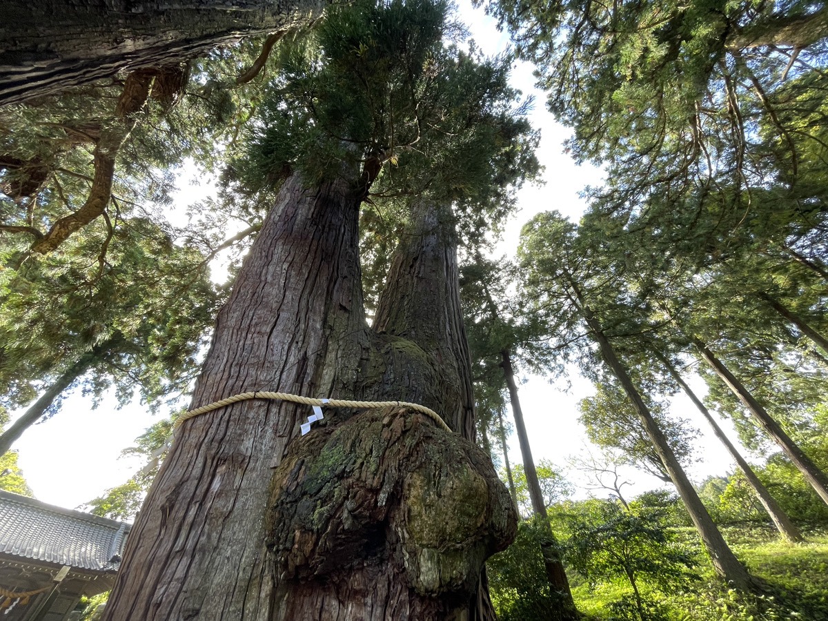 鳥居をくぐると神社内にそびえ立つのが、樹齢2300年とも言われる御神木『栢野の大杉』