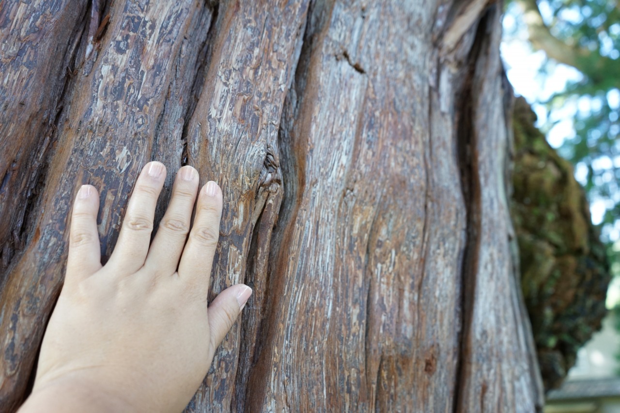 そっと触れてみると、直接木のパワーを感じられる気がしましたよ。