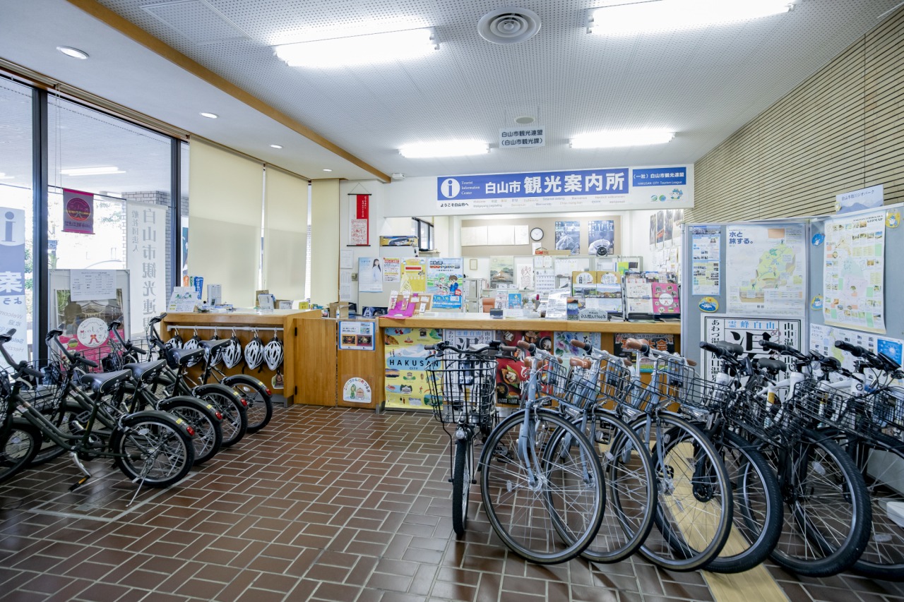 北陸鉄道石川線鶴来駅から徒歩1分の場所にある『白山市観光連盟』では、自転車のレンタルサービス「白山GOレンタサイクル」を実施しています。