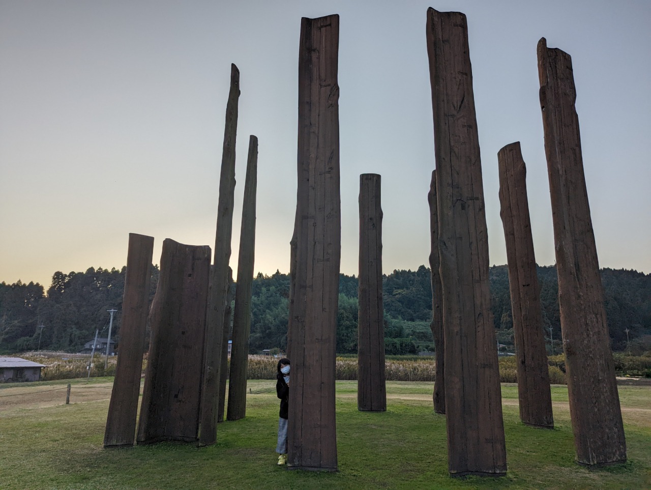 「あれは環状木柱列という遺跡なんですが、実は何かはまだ解明されていないんです。」