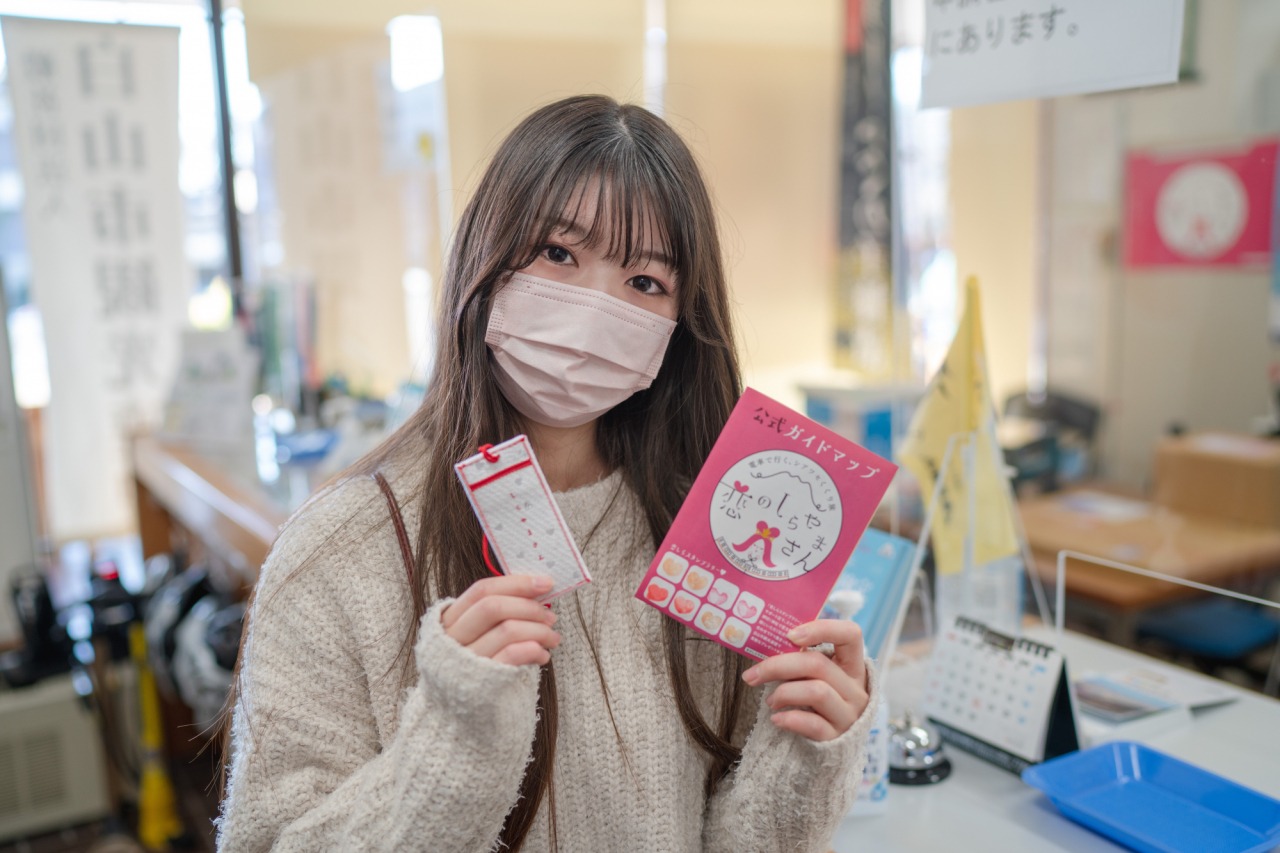 こちらでは恋のしらやまさんきっぷを買うとついている「公式ガイドブック」を提示すると、ハートのスタンプを4個貰えます。