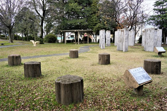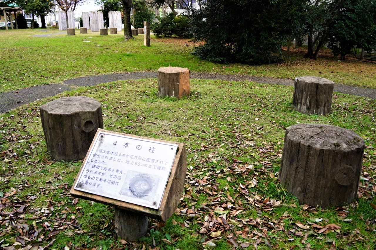 公園には地上2mまで復元したという、不思議な木柱も立っています。