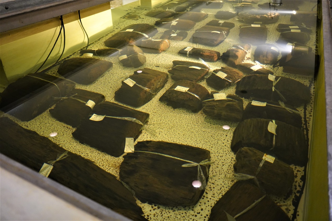 空気に触れると乾燥で劣化して崩れやすいため、水中で保存しているのですって。