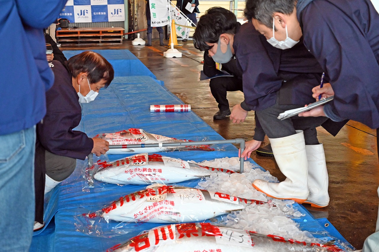 能登半島の内浦(富山湾側)は海底が急深な地形で、寒ブリなどの回遊魚が岸近くまで回遊するため定置網漁が発達。全国的にも有数の定置網地帯で、石川県全体で大小合わせて100以上ある定置網の大部分が内浦海域に集中しています。