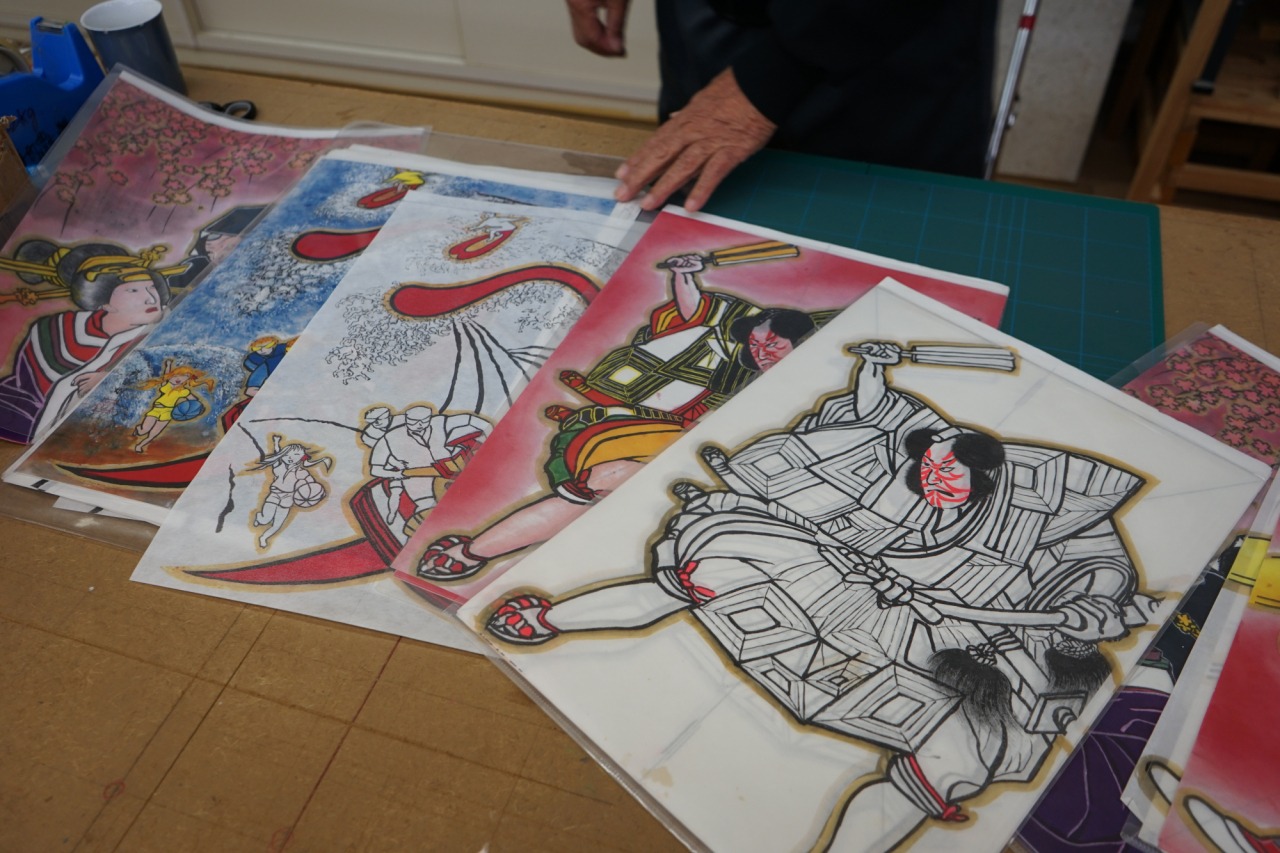 この下絵は、水墨画をたしなむ凧の会の会長さんが一枚一枚手書きで描いたものだそうです。
