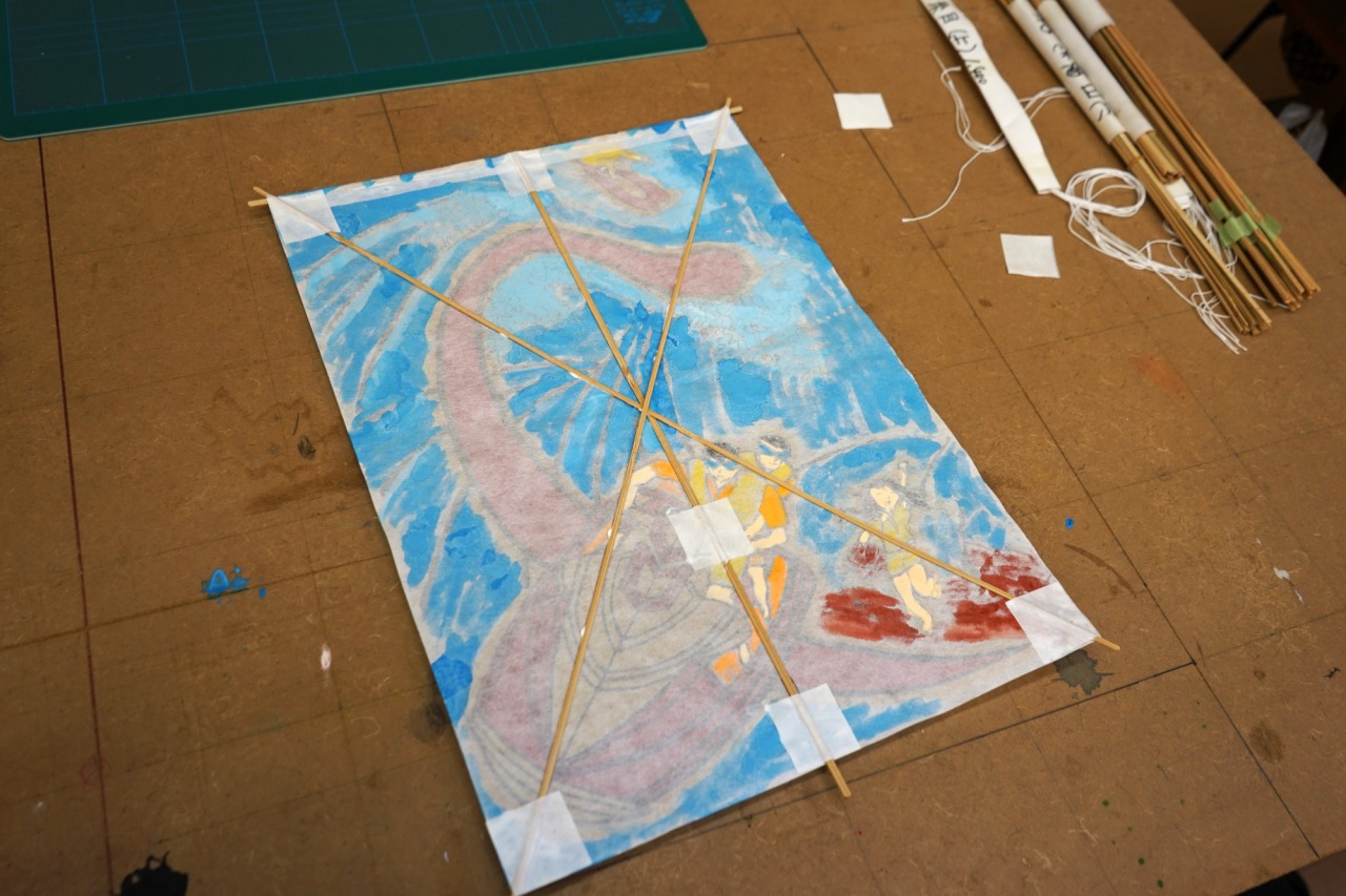 糸を結ぶ作業は少しコツがいるので凧名人にお願いしましたが、その他の作業はシンプルで、不器用なわたしでも比較的スムーズに凧を完成させることができましたよ♪