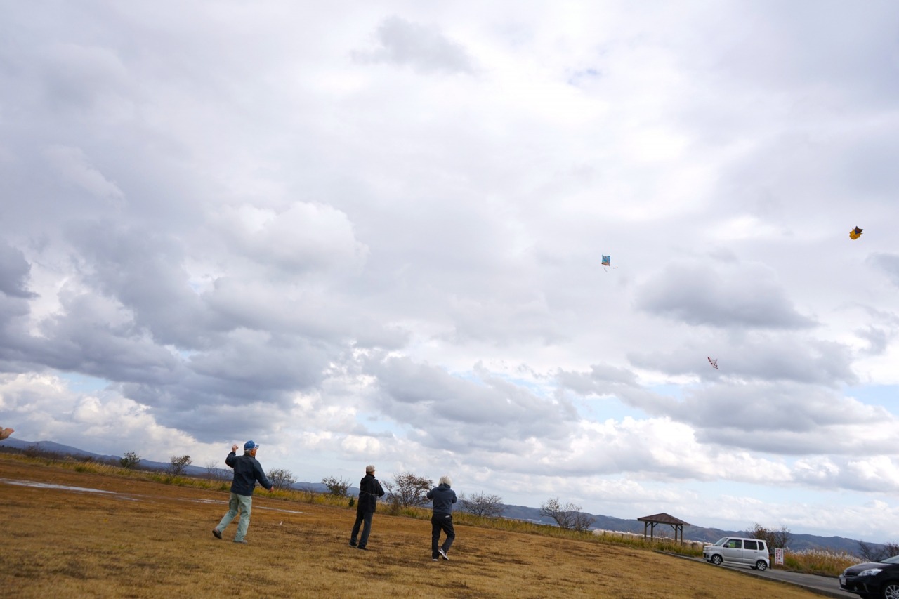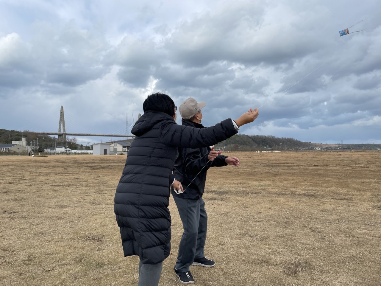 体験内容としては、凧を作り上げるまでなのですが、せっかくなので「どんな風に揚がるのか見てみたい!」と思い、会員の皆さんにお願いすると快くOKしてくれました。
