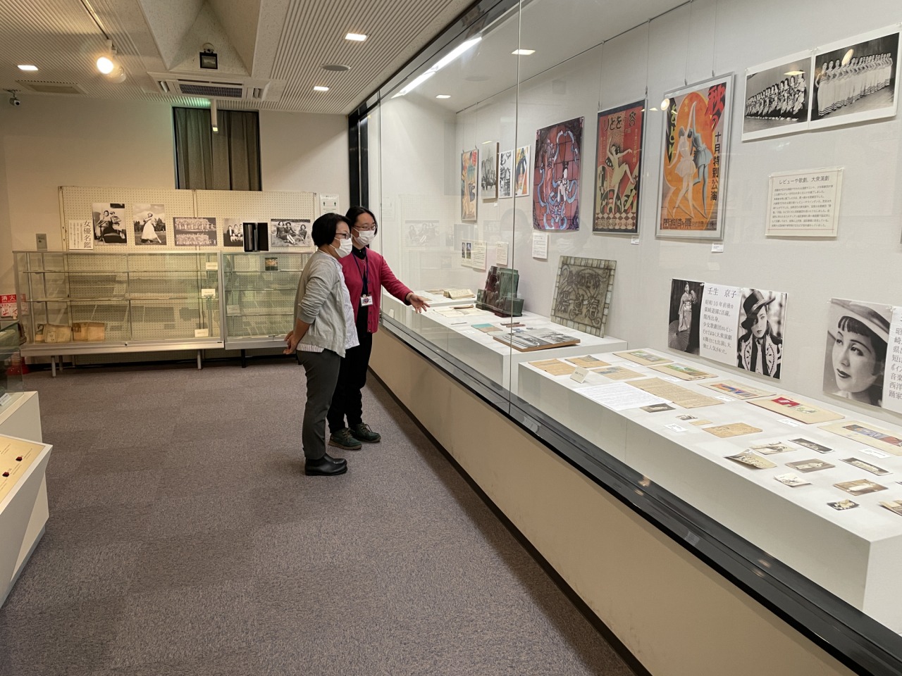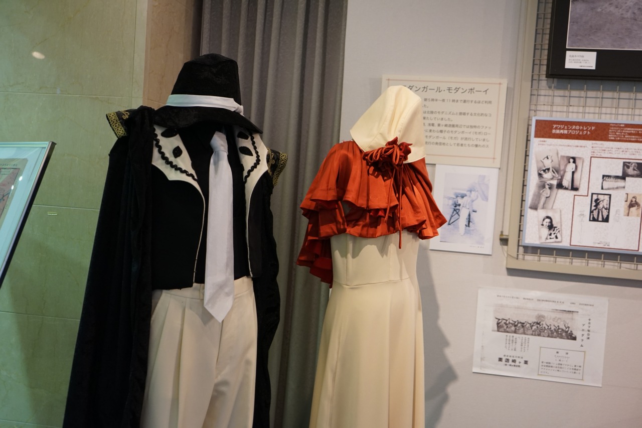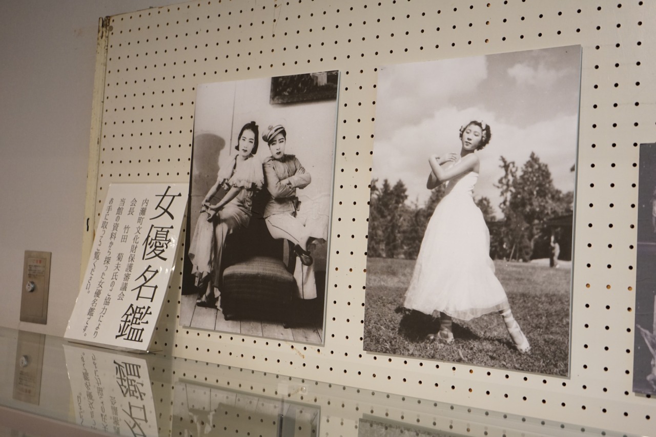 陳列棚には、当時の舞台衣装を再現したものや、入場券・招待券、スター俳優のブロマイド、大浴場のタイルなど、当時のにぎわいを感じることができる貴重な資料が並んでいます。