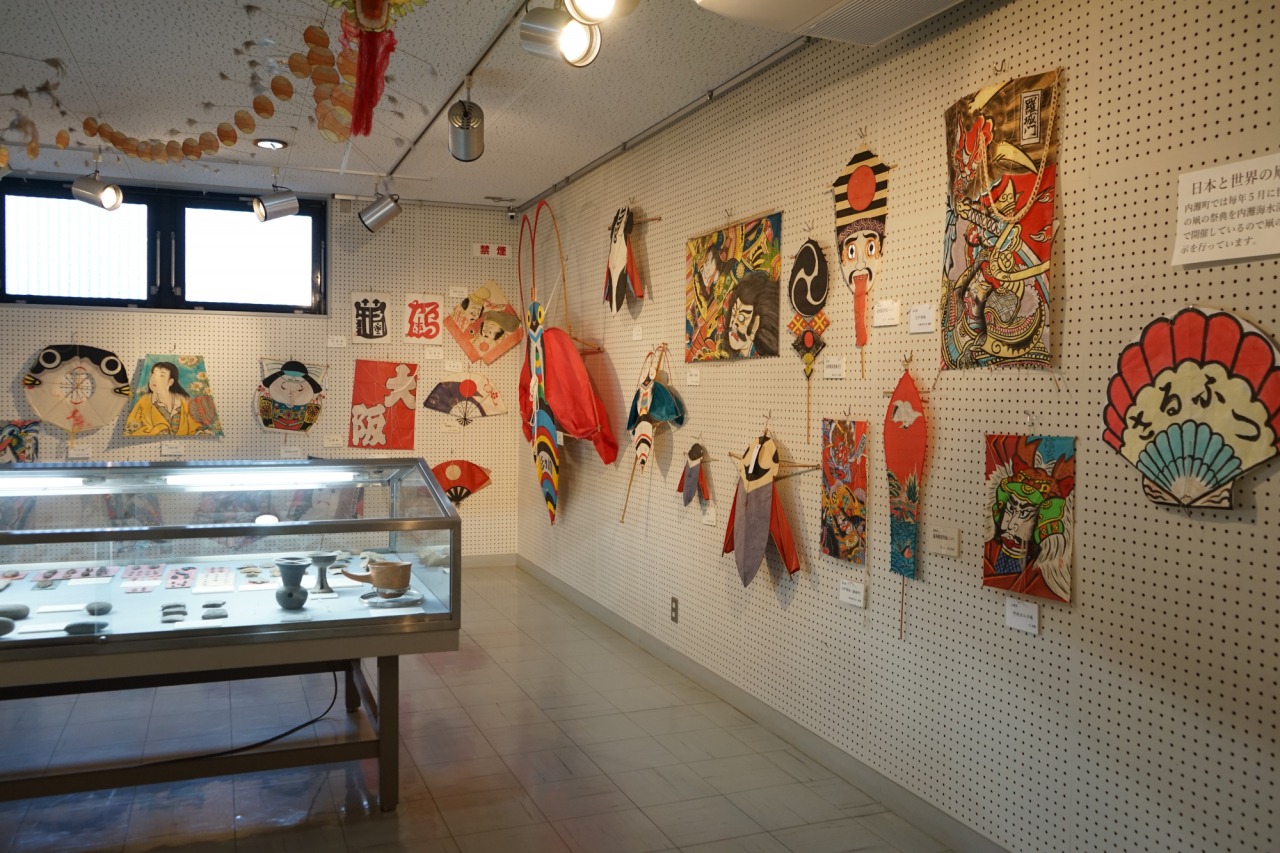 2階のホールでは、「世界の凧の祭典」で実際に揚がった日本、世界の凧も展示されています。