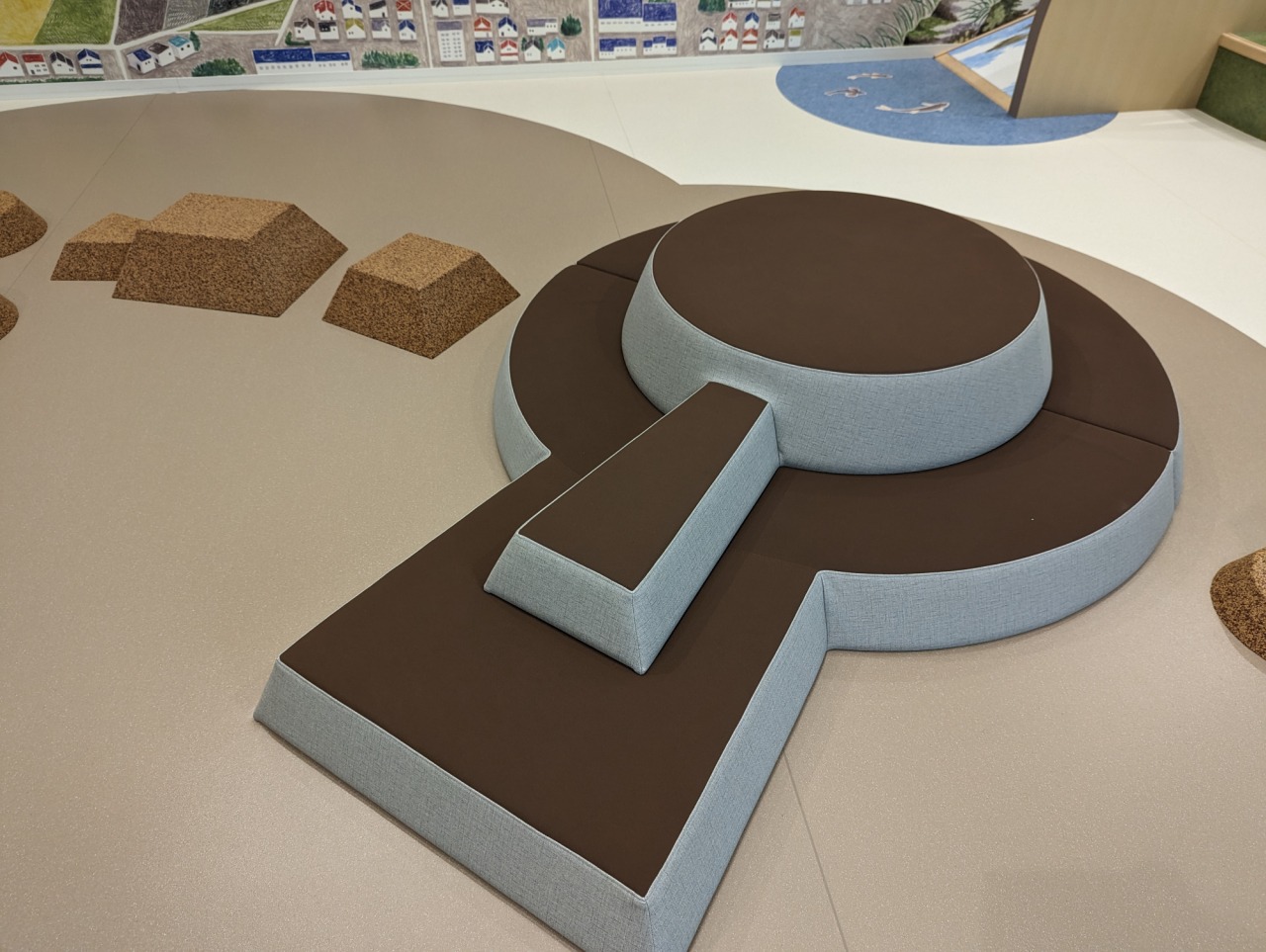 遊ぶうちに自然と能美の魅力が学べてしまうすごいプレールームなんです。ここの遊具は能美の自然・歴史・民俗をイメージして作ってあり、