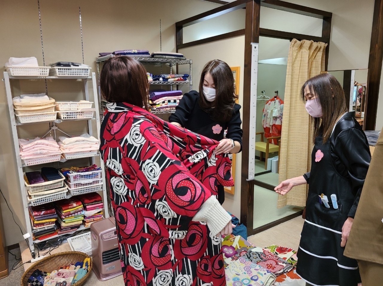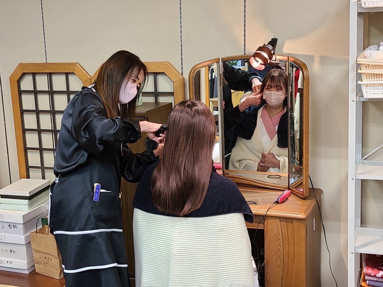 今回、受付から女性の着付け完了までは約1時間でした。ご参考までに!
