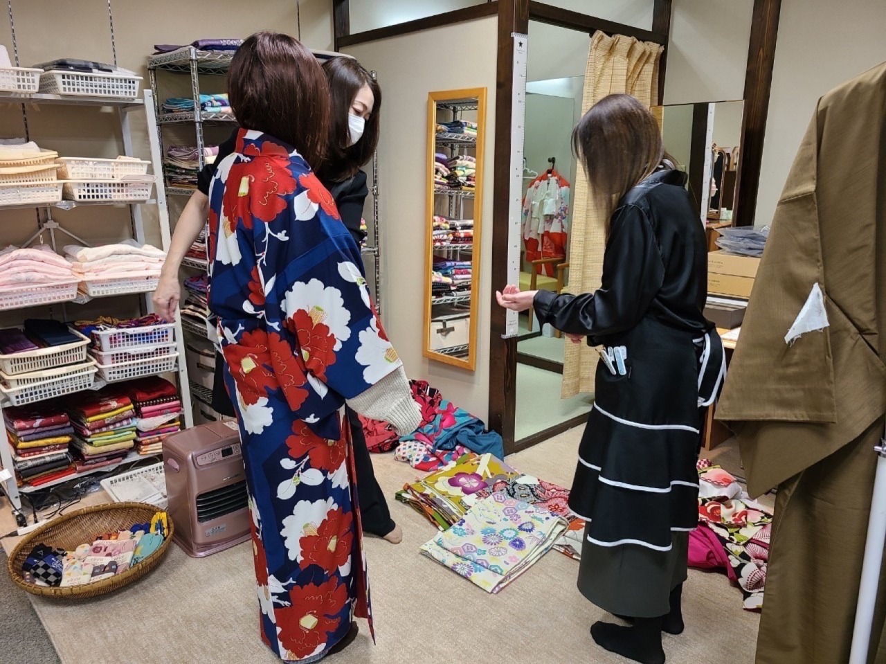 こちらでは呉服だけではなく、婦人服や雑貨、学生服なども取り扱っています。