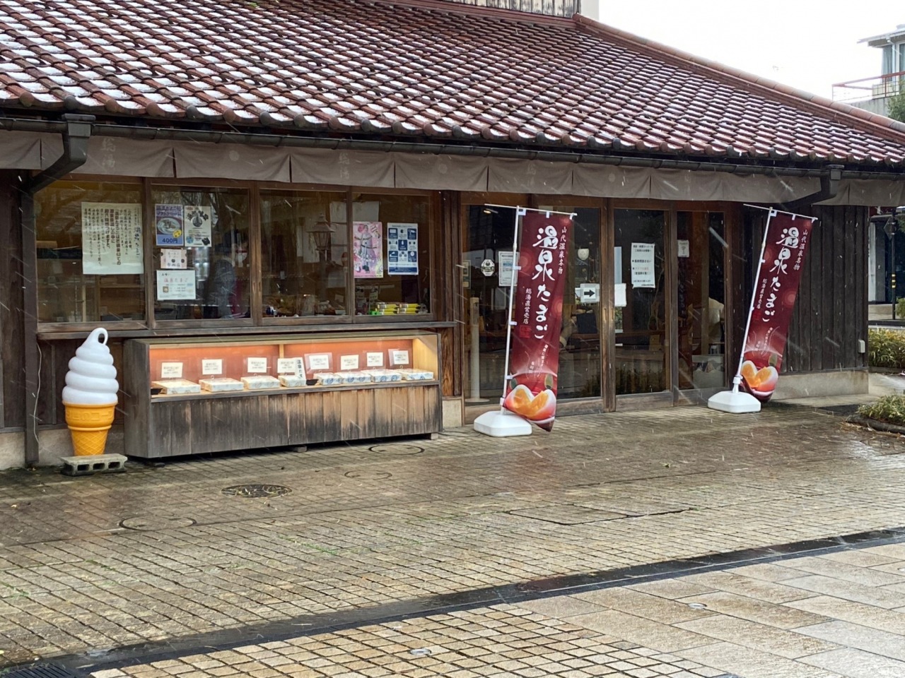 こちらがお待ちかね、山代温泉名物「温玉ソフト(400円)」です!