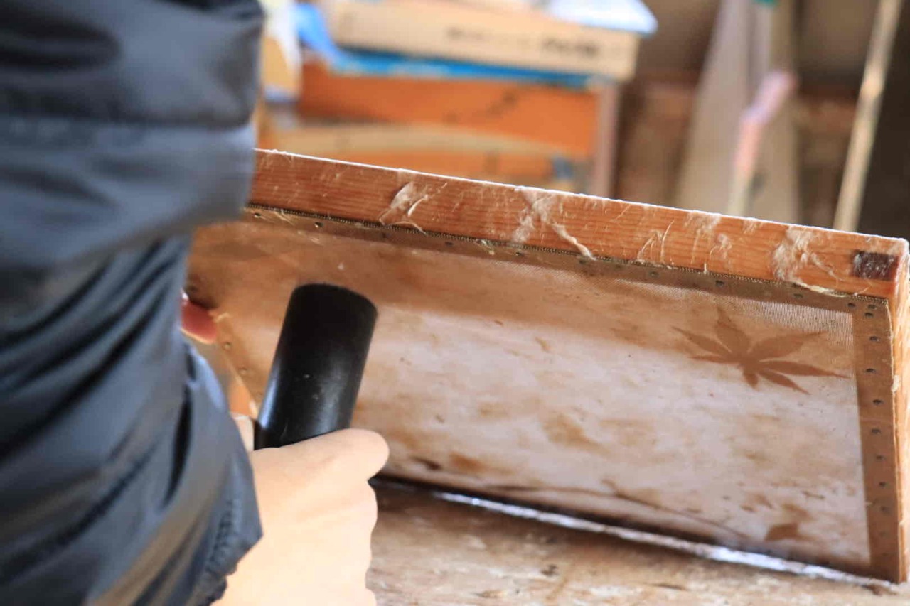 雁皮は栽培が難しく自生しているものを使用するため、良質な繊維部分が少なく塵(ちり)なども多いため、処理に手間がかかるそうです。
