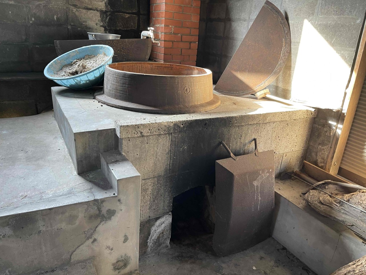 雁皮の皮の中にある白い皮を取り出し、半日大きな釜で煮ます。