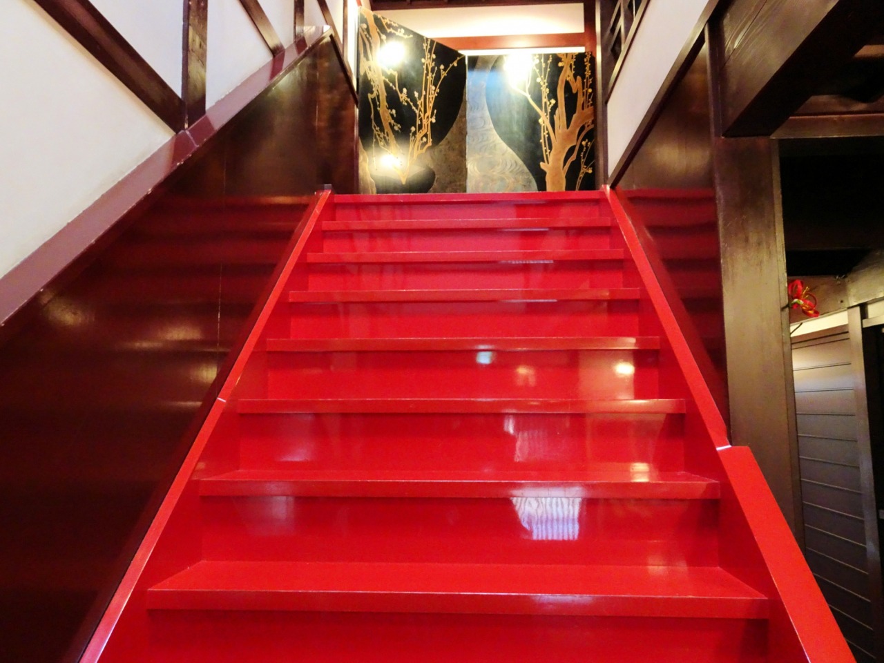 朱塗りの鮮やかな輪島塗の階段が!