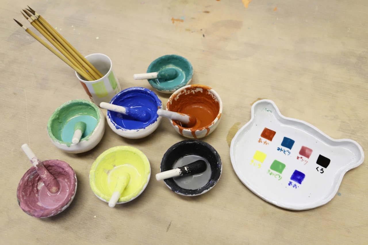 きれいな7色の絵の具で絵付けをしました!