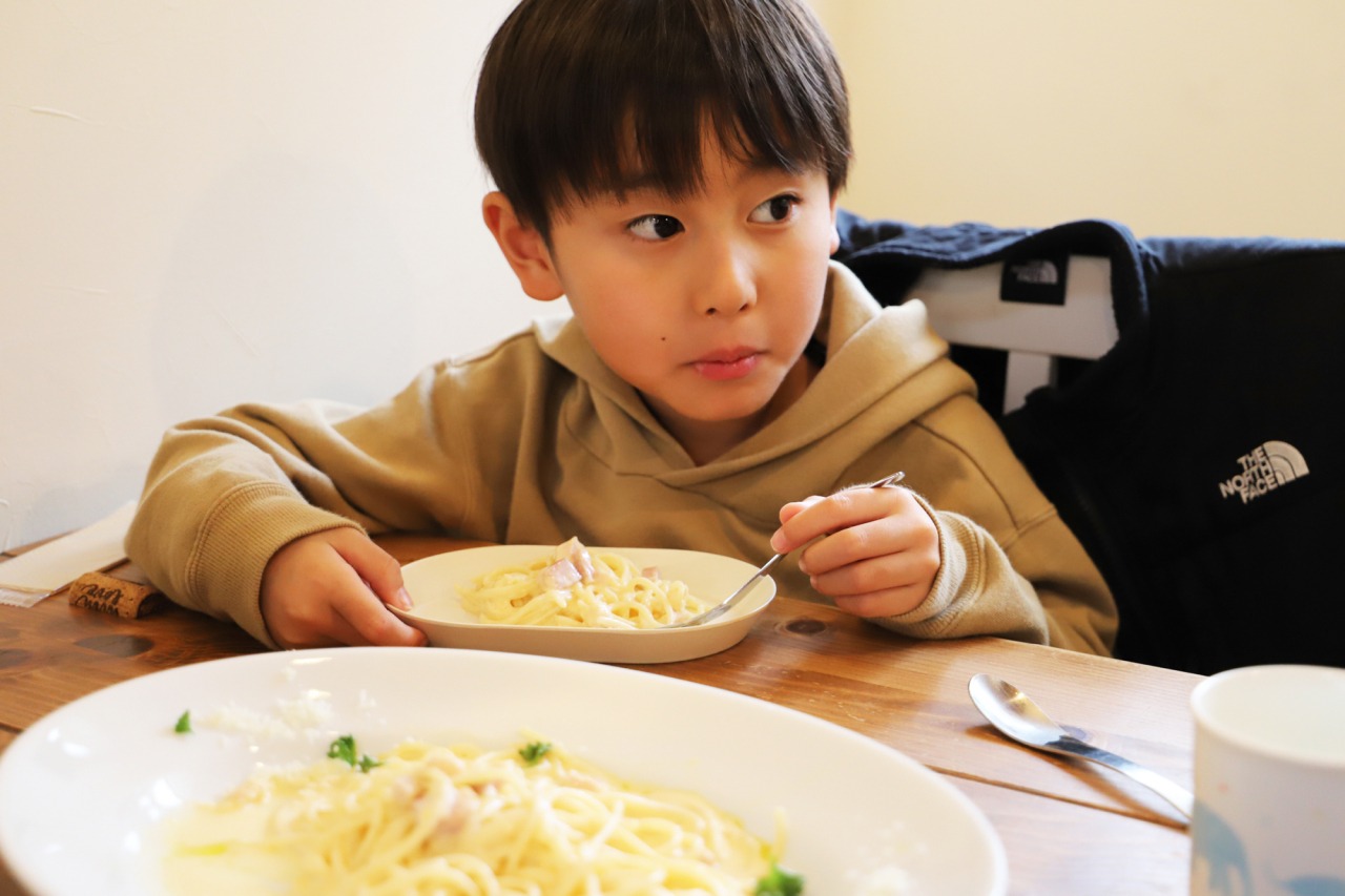 子どもたちにはカルボナーラのパスタを出していただきました。
