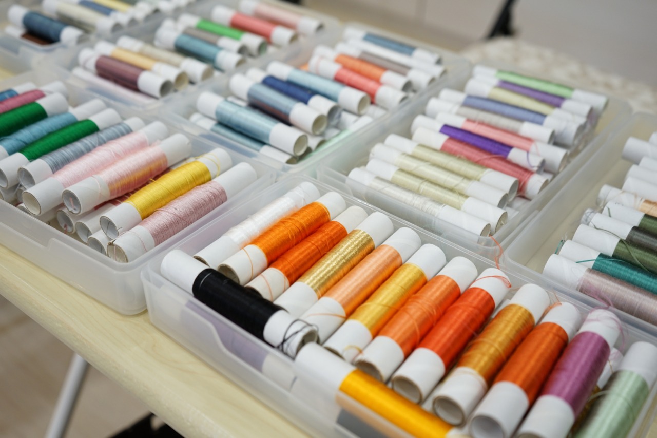 わたしはストラップを作ることに。作るものを決めたら、最初に使う糸と布を選びます。