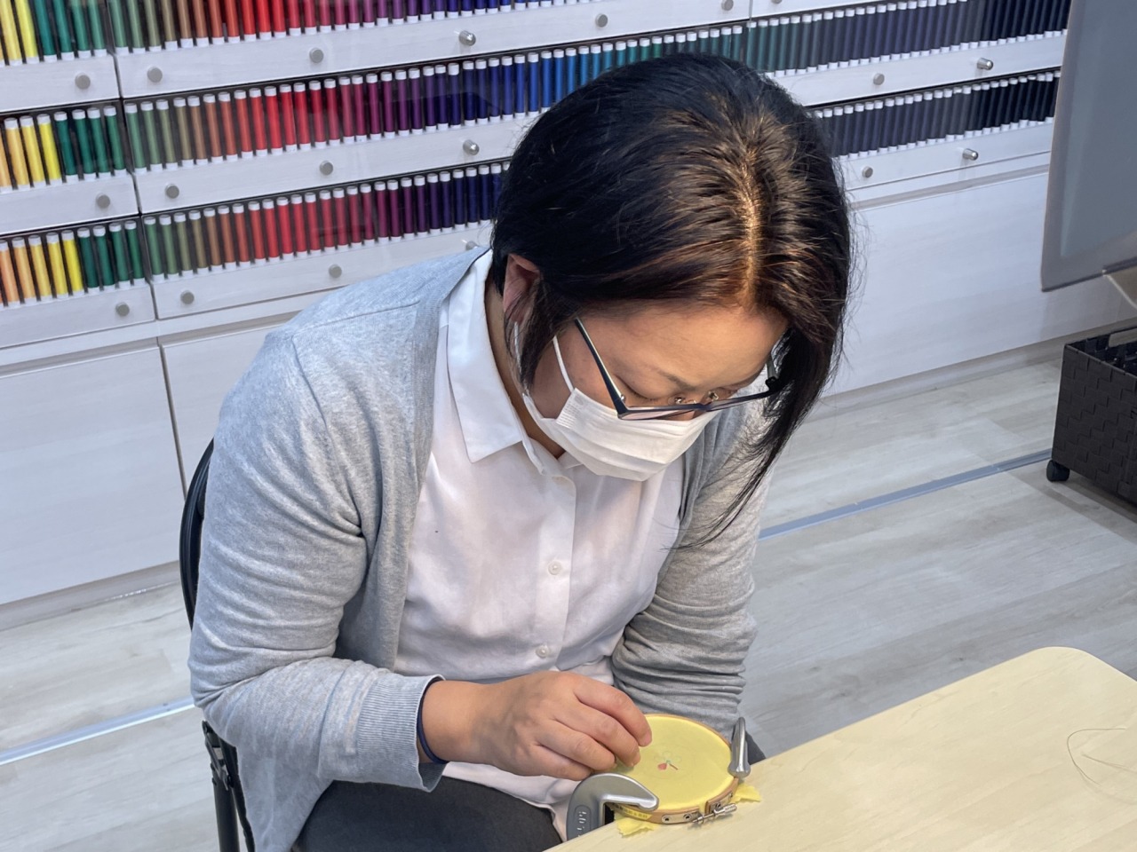 こちらは、加賀繍の老舗『ぬいの今井』で伝統の技を代々受け継ぎ、国の伝統工芸士にも認定された横山佐知子さんが立ち上げた工房です。