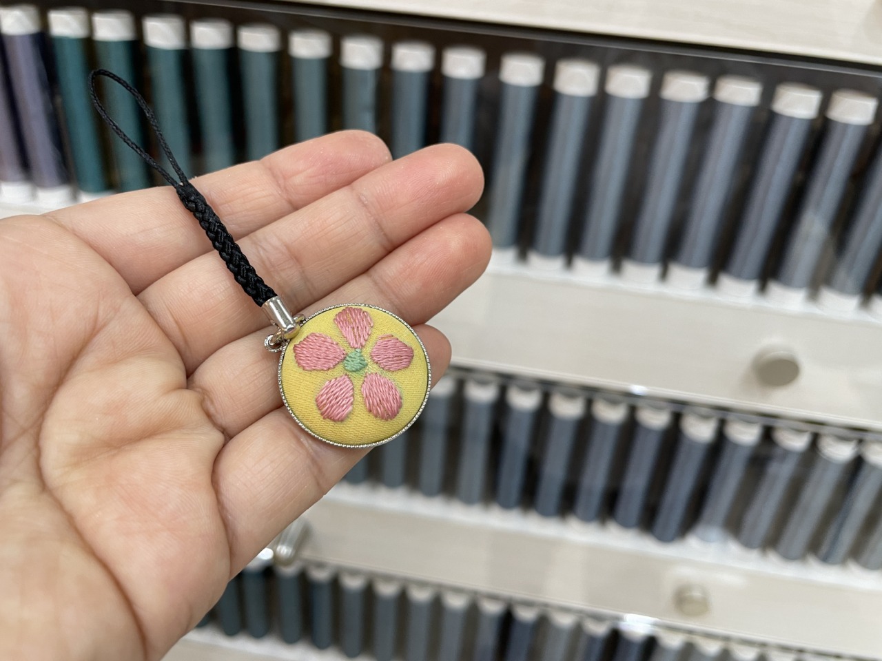 金具などを付けてもらって、加賀繡オリジナルストラップの完成!