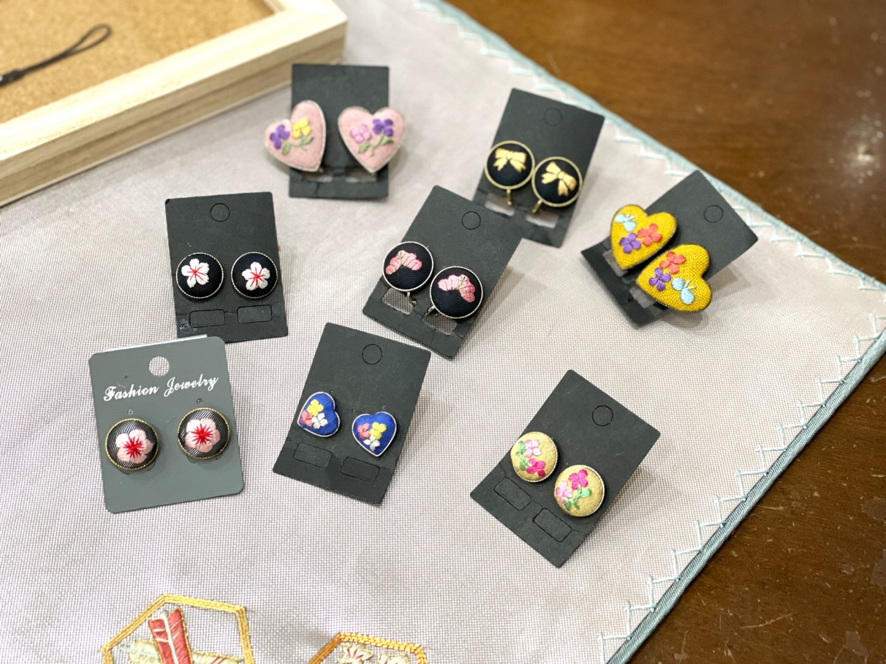 ヘアゴムやストラップ、ピアスなど、お好みのアイテムを選び、花や植物といったモチーフを刺繍できます。