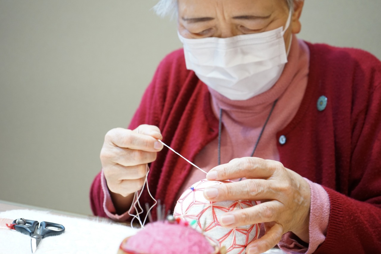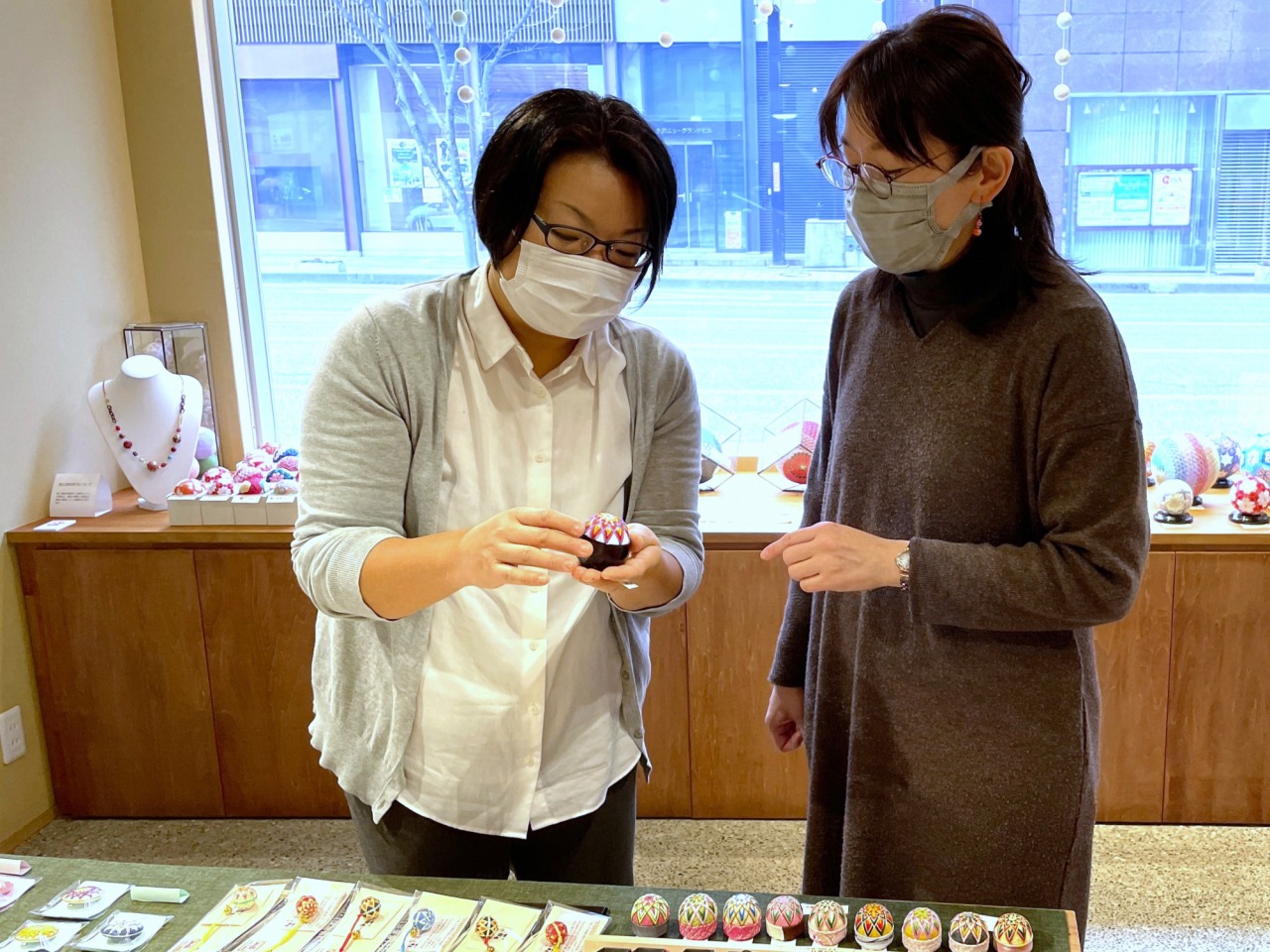 店内では随時、作品制作も行われているので、タイミングによってはてまりやゆびぬきの貴重な制作風景を見学することもできますよ。