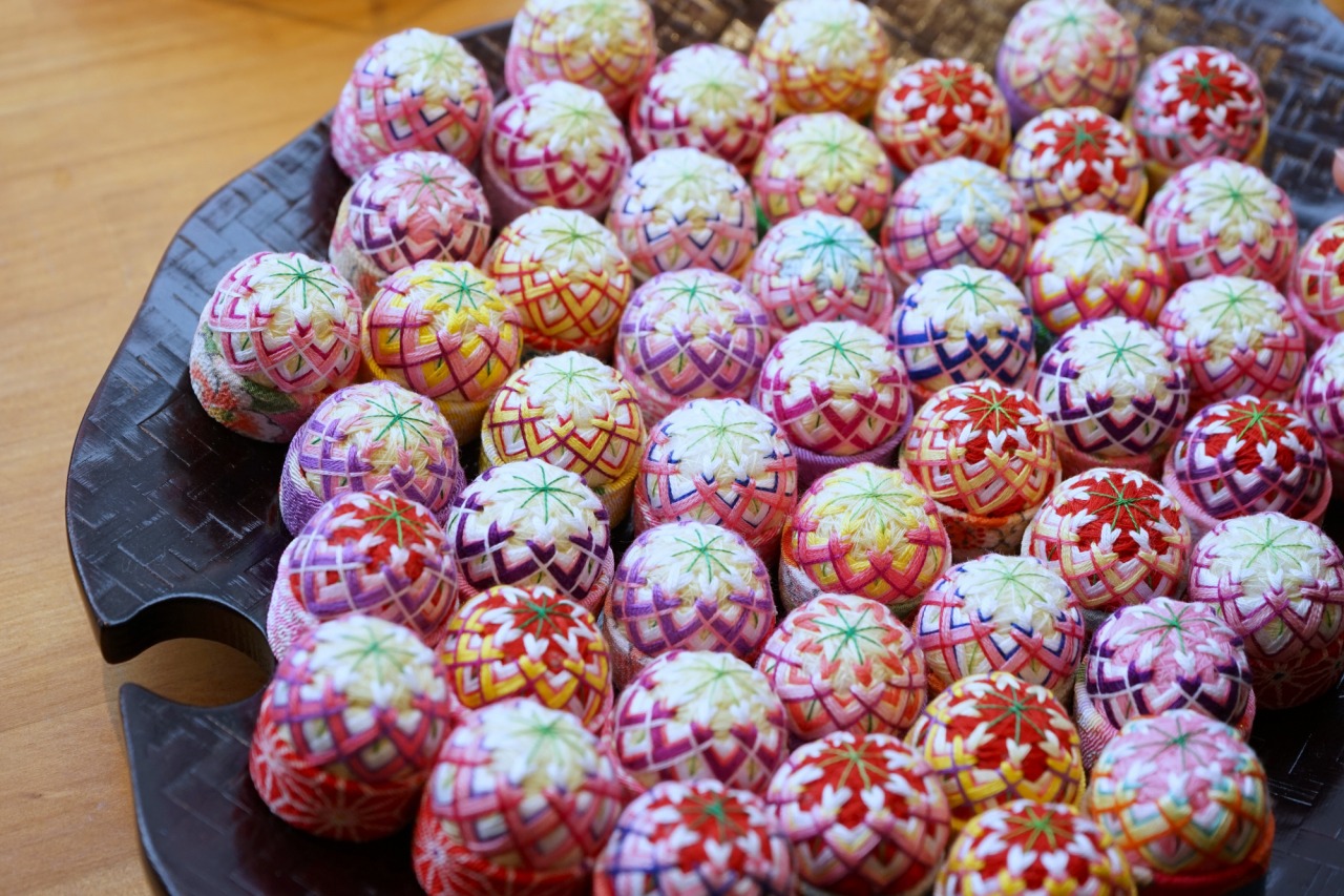 金沢では娘が嫁ぐ時に幸せを願っててまりを持たせる習慣があったそうで、魔除けとして床の間などに飾られることもあります。