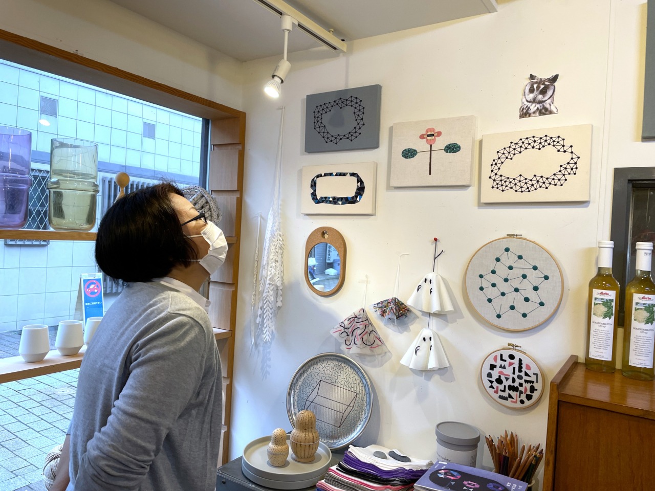 ここは、刺繍作家である髙知子さんのアトリエ兼ショップで、オリジナルの刺繍作品の他、髙さんがセレクトした雑貨や洋服などが展示・販売されています。