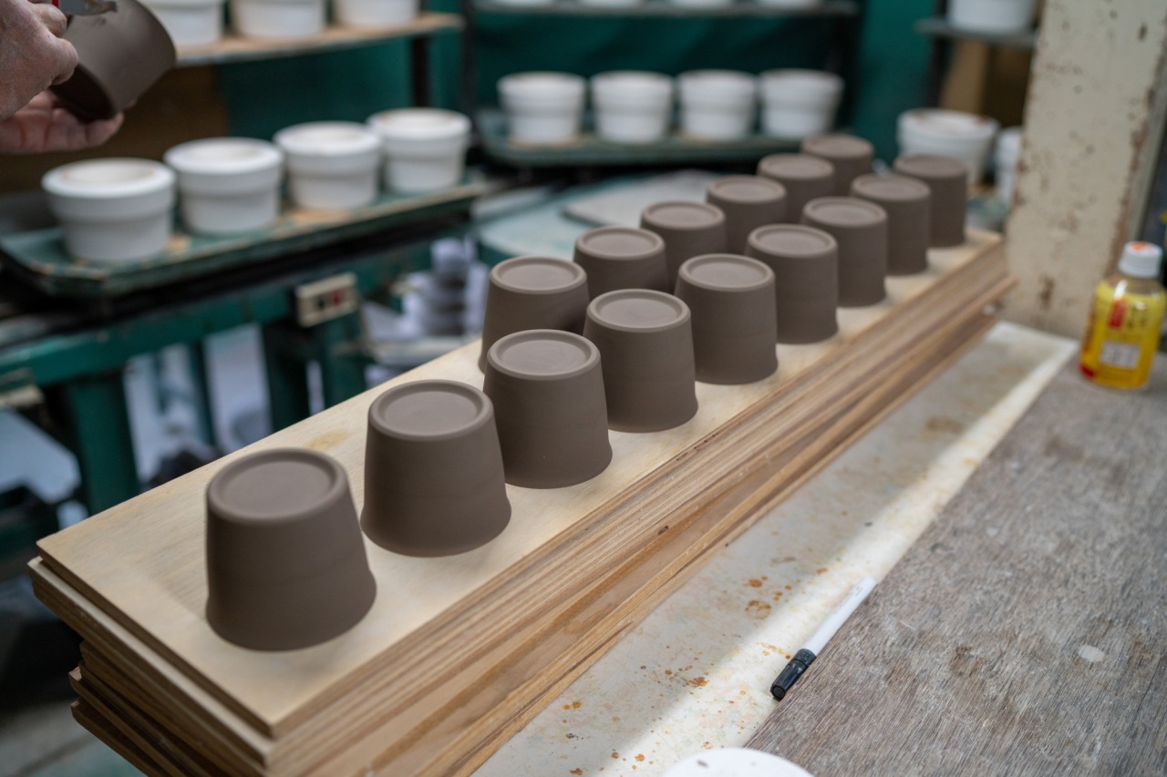 なお、底部分に釉薬がついているとくっついてしまうので、素地の底の部分だけ釉薬をぬぐい取るそうです。
