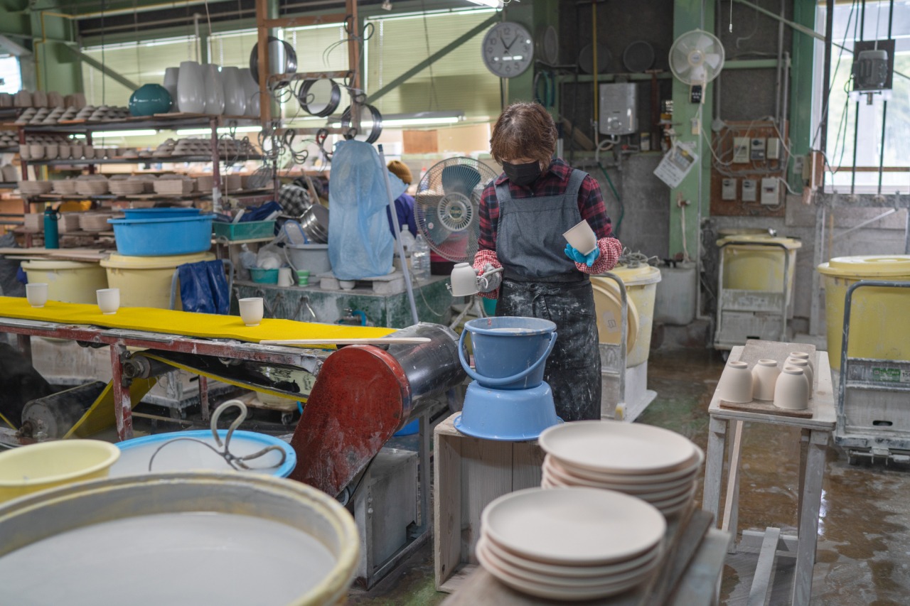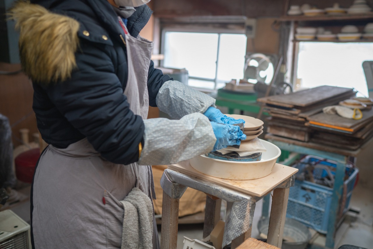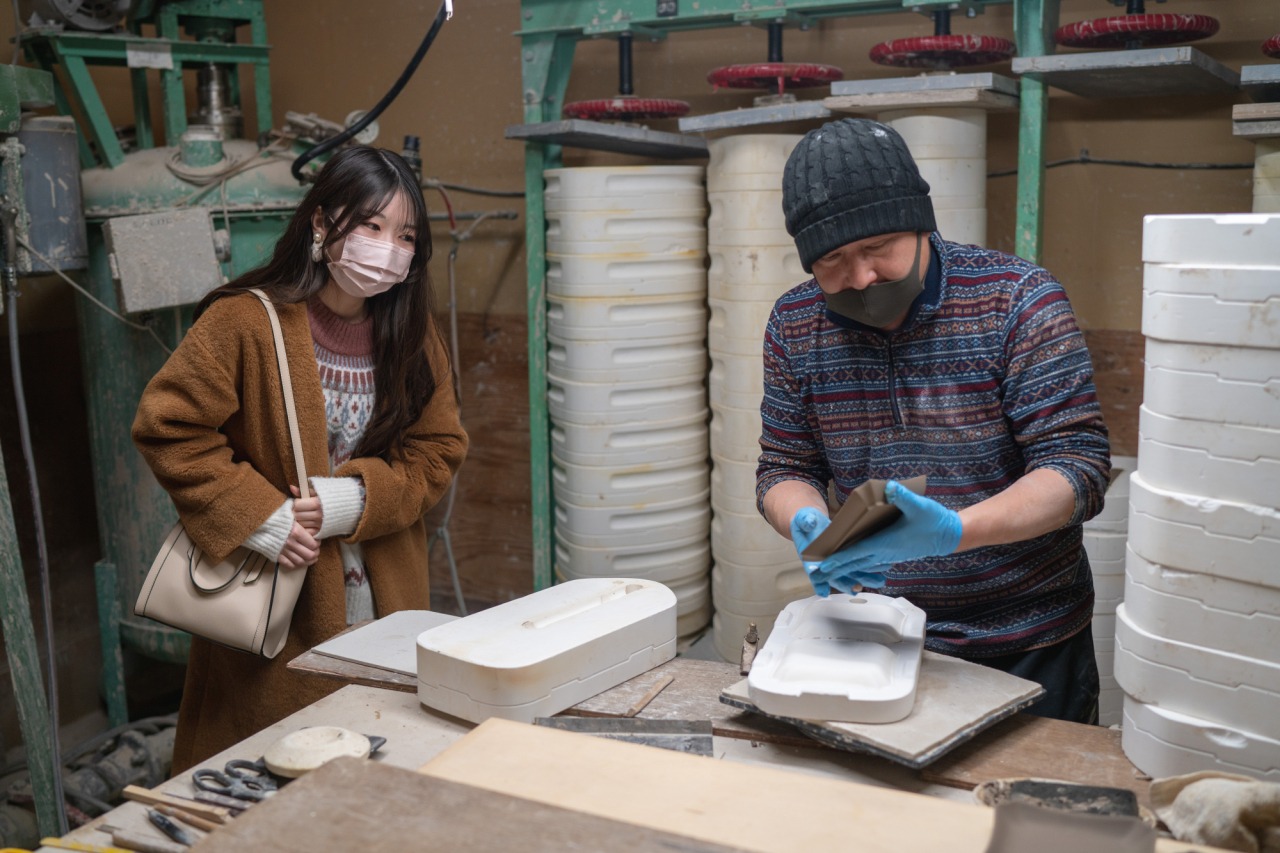 今回の工場見学では九谷焼の工程を間近で拝見。
