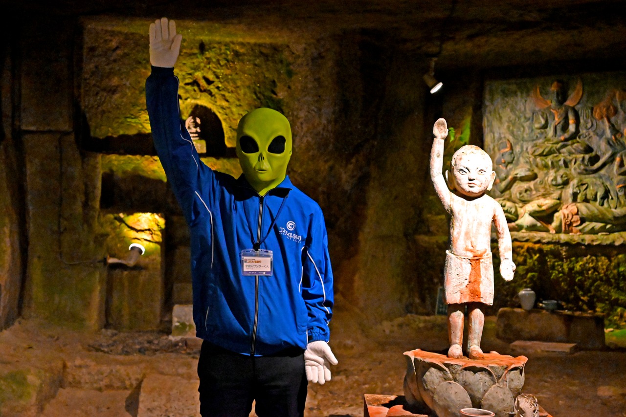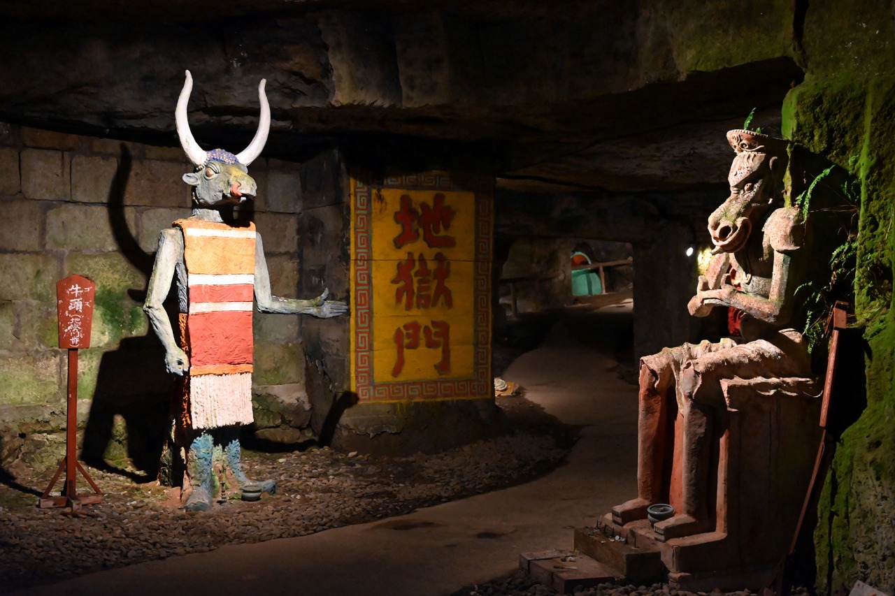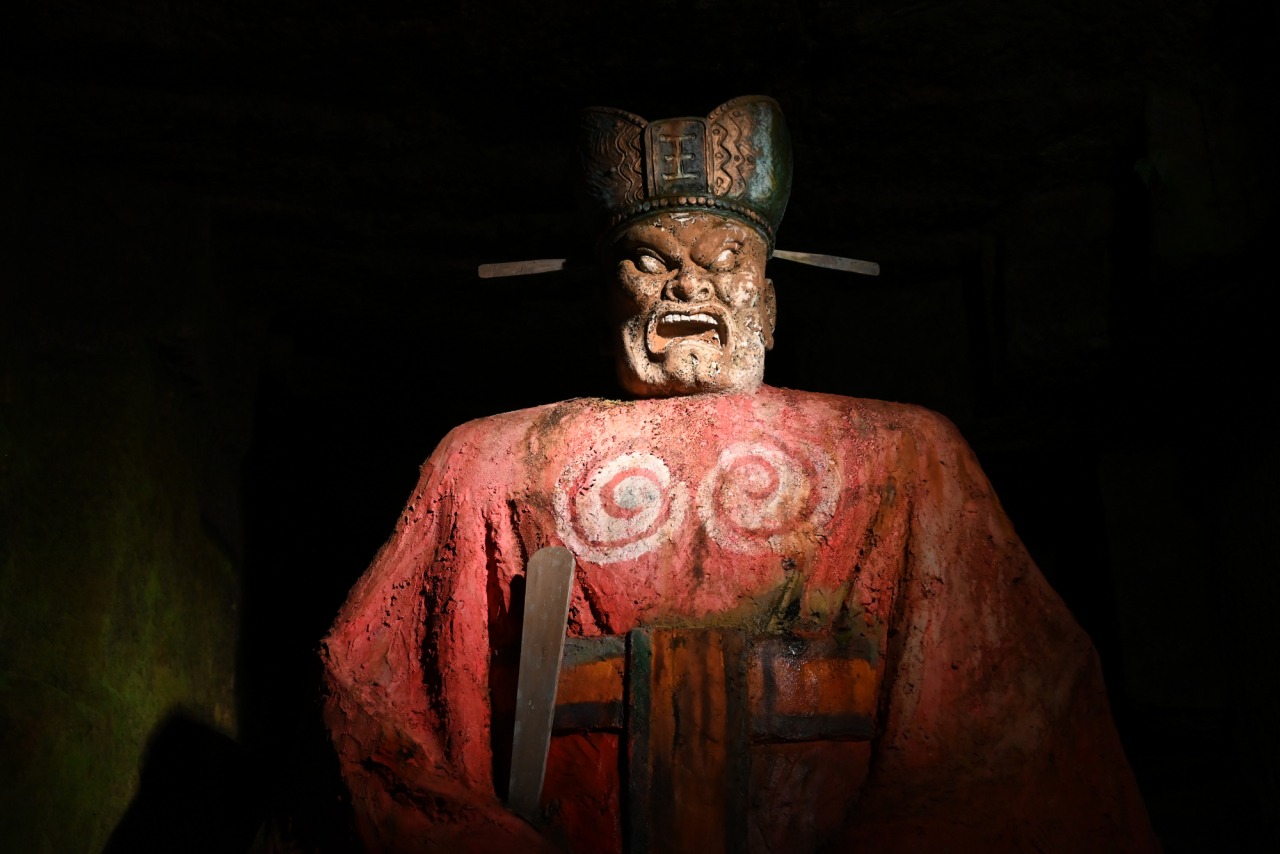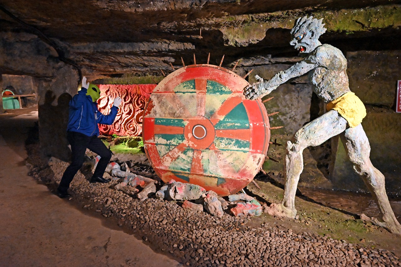 「な〜んていう妄想も膨らんで、ハニベ巌窟院はユニークな映え写真もたくさん撮影できます。地獄巡りや独特の世界観を体験できるのは、芸術家が創り上げた超リアルで本気の作品があってこそ」とサンダーくん。