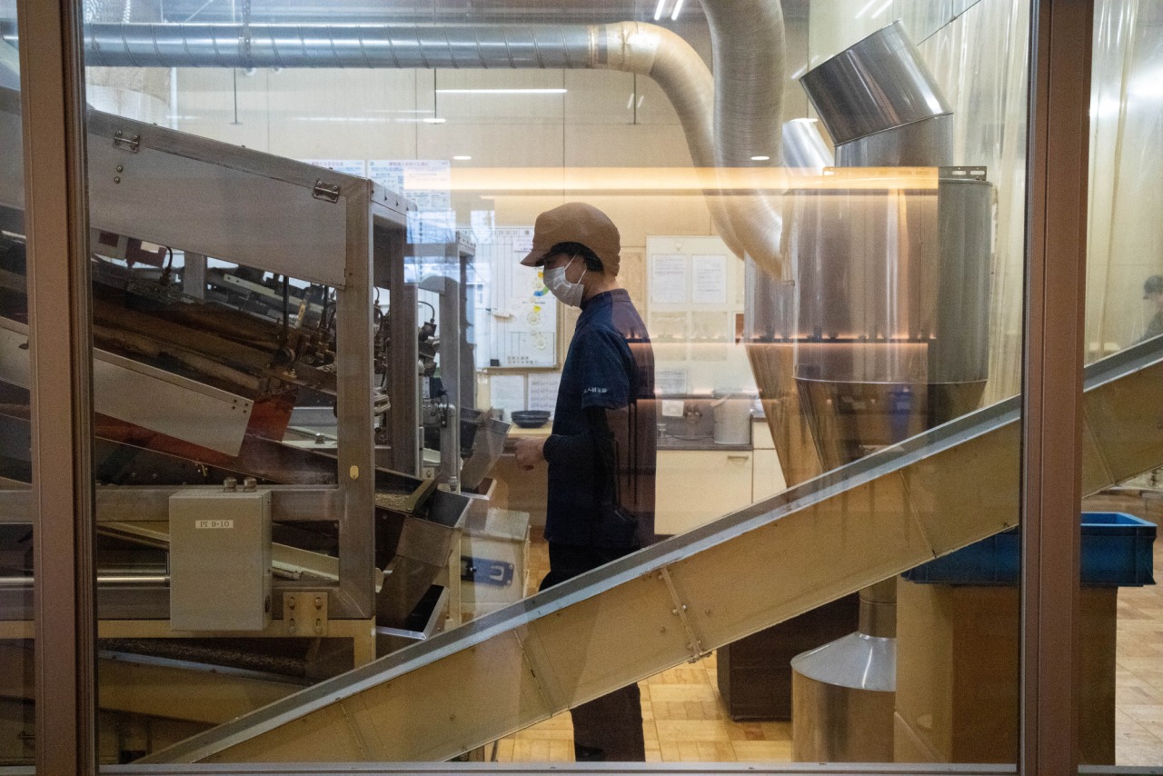最後に訪れたのは、1863年創業の『丸八製茶場(まるはちせいちゃじょう)』。九谷美陶園から車で10分程の場所にあります。ここでは、日本茶の製造と販売をしており、駐車場について驚いたのは、外にまでふんわりと広がる棒茶の香りでした。