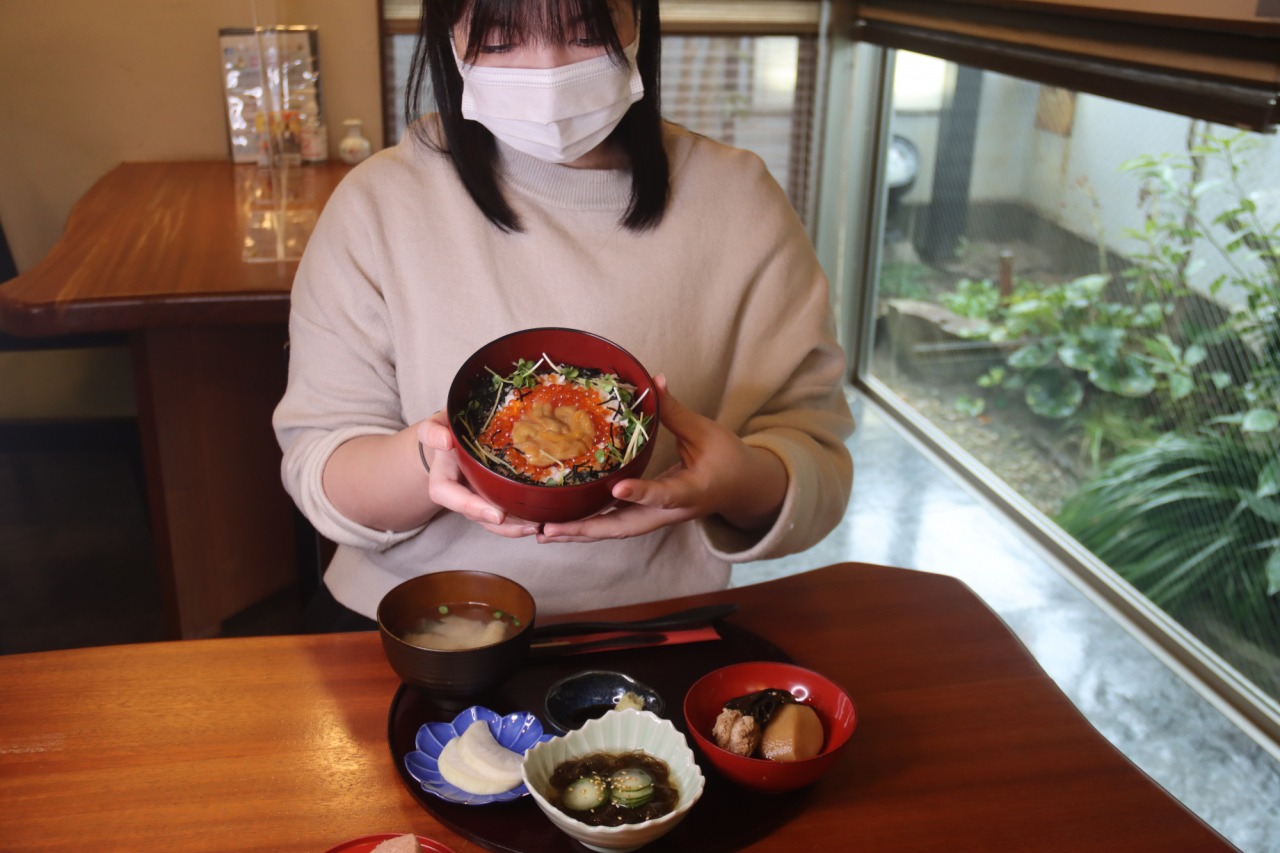 ひと口ひと口美味しそうに頬張っていますが、感想は?「このわたは磯の香りがたっぷり。粘りがある食感と、独特のにおいも少しあるけど、それがまたよくてご飯にぴったり合う!」と絶賛。ニコニコ顔で完食しました。