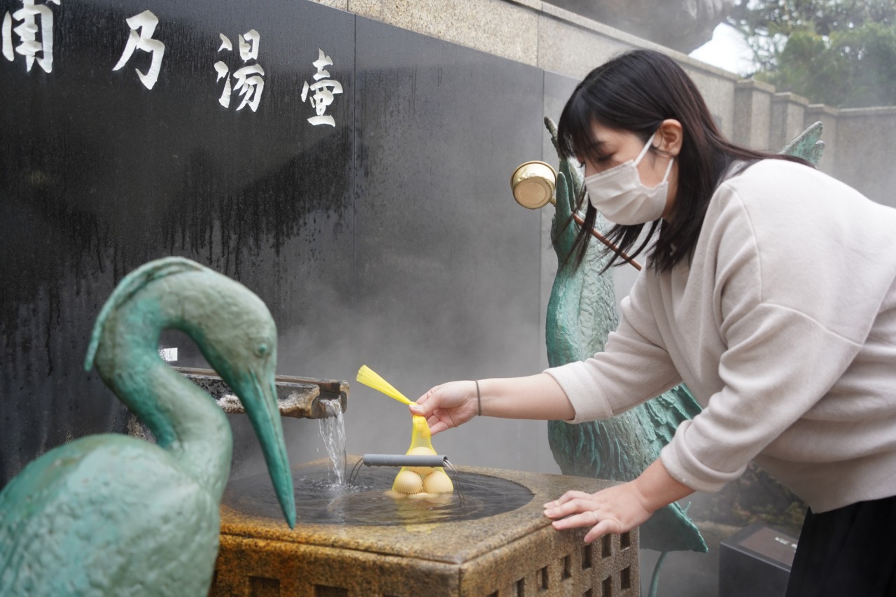 和倉温泉の源泉で温泉たまごづくりと手湯に癒される
