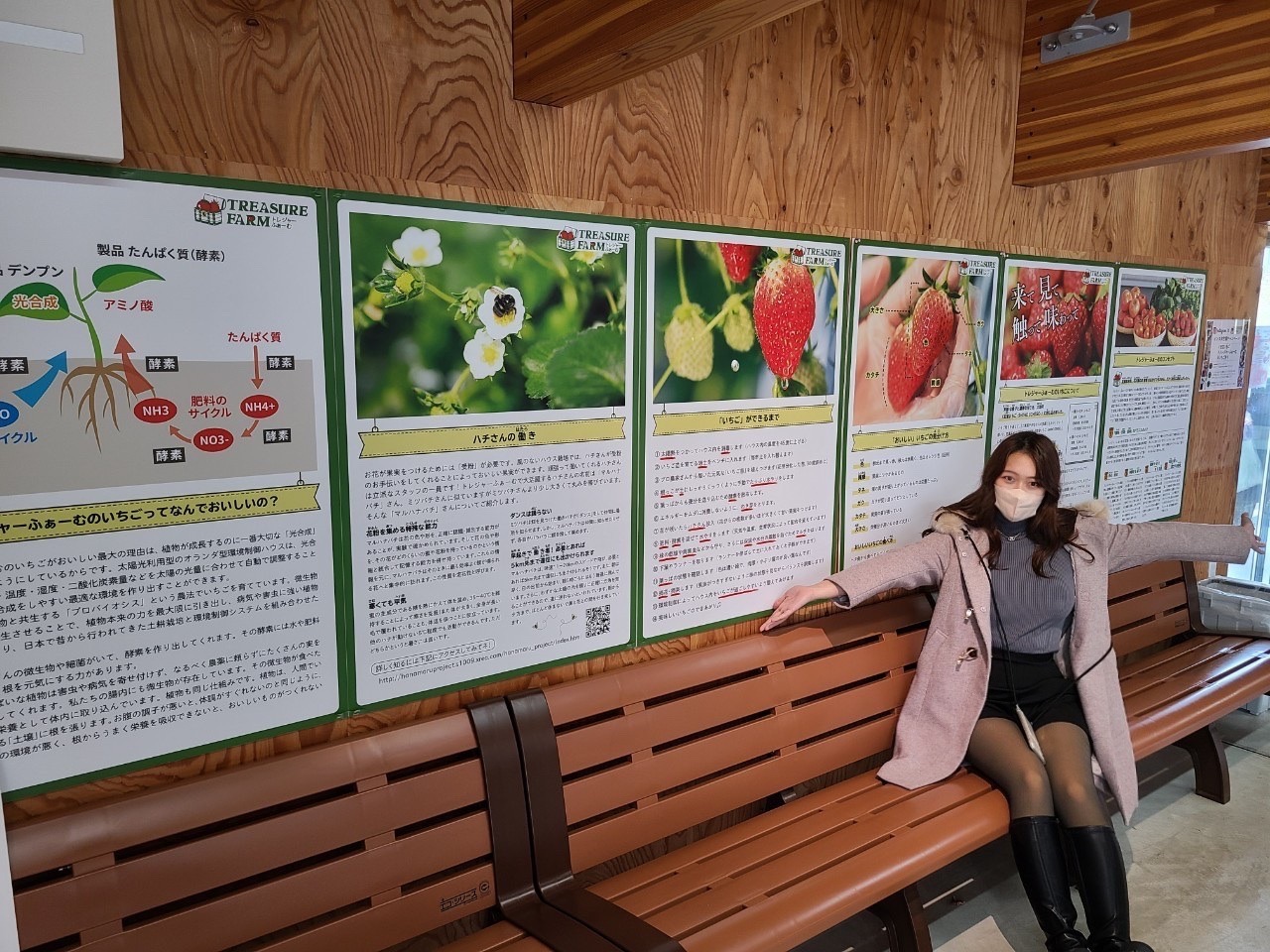 店内のパネルには「いちごができるまでの工程」や「おいしいいちごの見分け方」などがわかりやすく掲示されています。