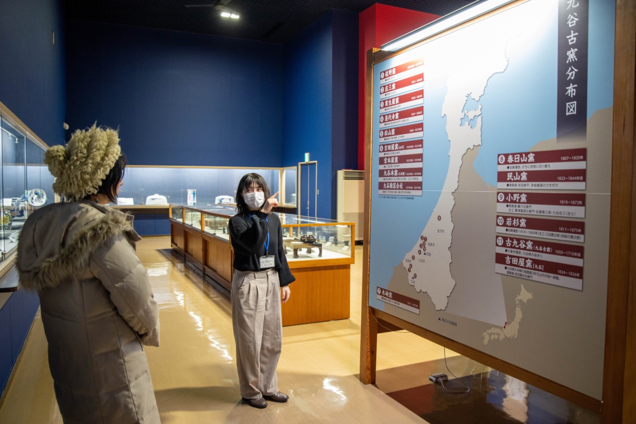 学芸員の方から九谷焼の成立から現代に至るまでの歴史を説明してもらいました。九谷焼の名前は知っているけど、その原材料から制作工程、技術の話などは初耳。これがすごく面白く、今度は作家さんの話を聞いてみたいと思いました。