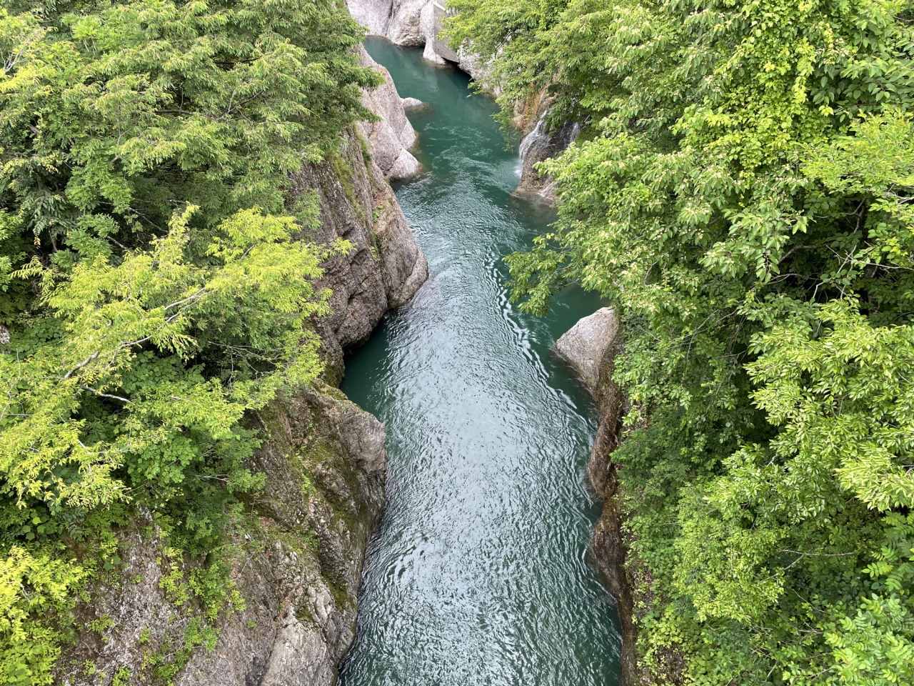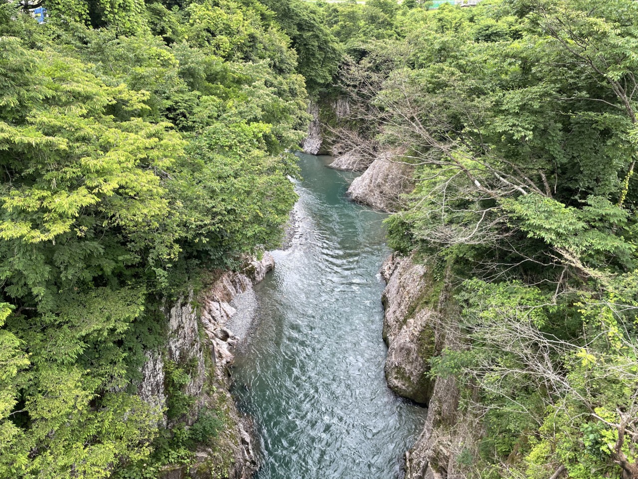 両側の崖が近く迫った溝状の地形は、手取川沿いでも指折りの絶景と言われています!