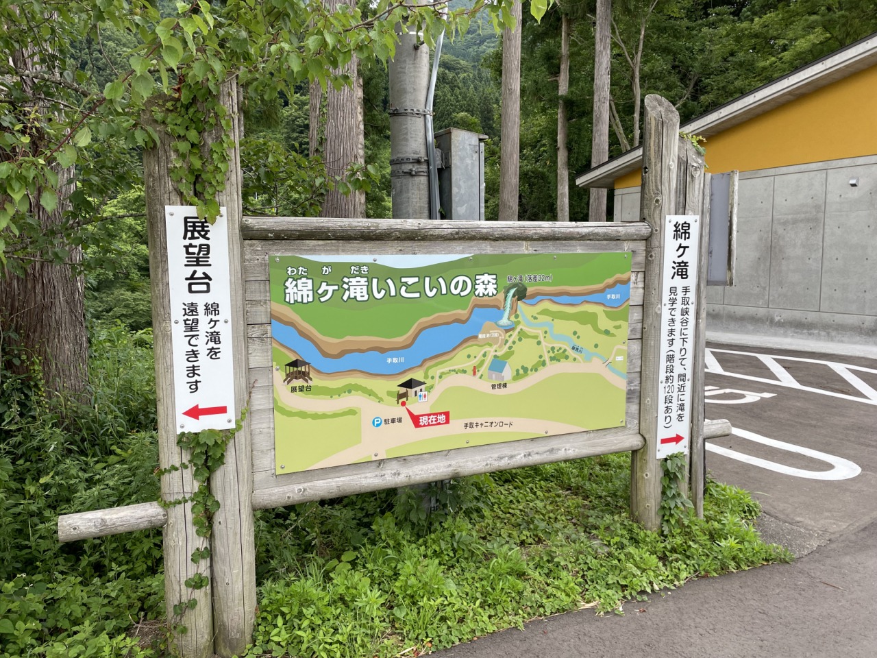 川と峡谷のエリアで必ず見ておきたい綿ヶ滝がある綿ヶ滝いこいの森に到着!